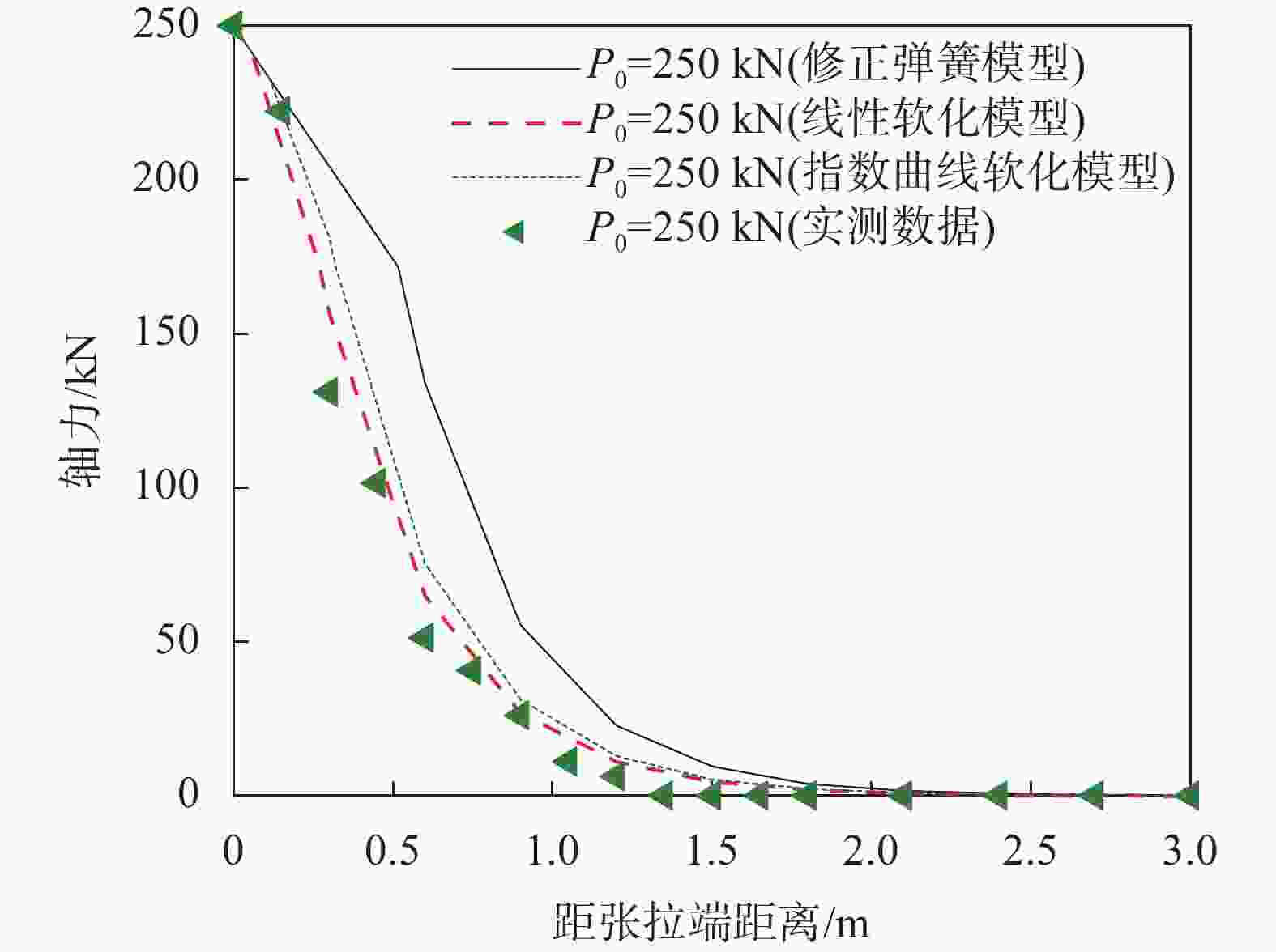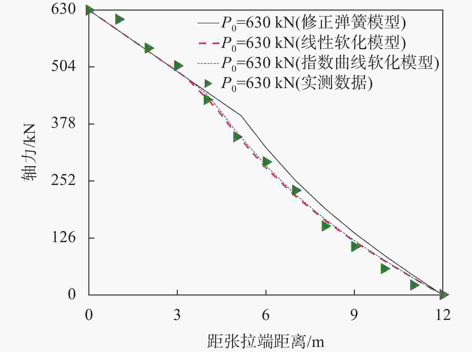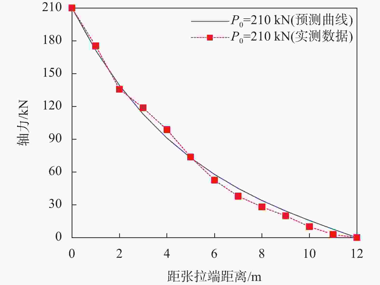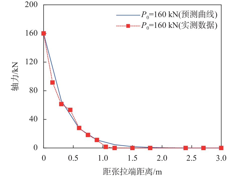 图  9  试验锚索弹性变形阶段轴力分布预测曲线与实测数据的对比