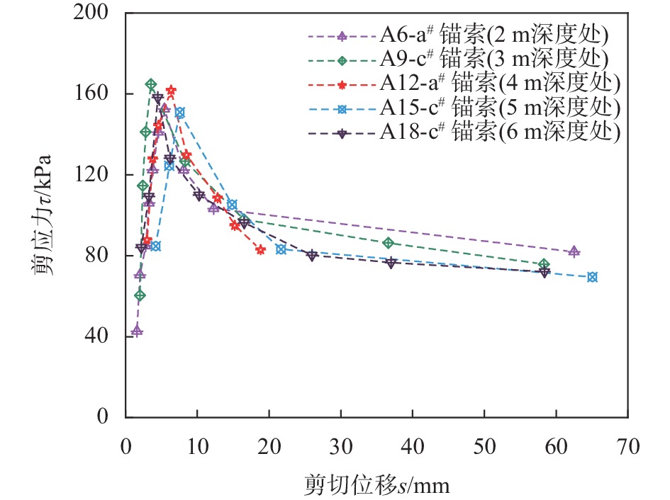 图  3  试验锚索灌浆体–岩土体界面剪切滑移曲线