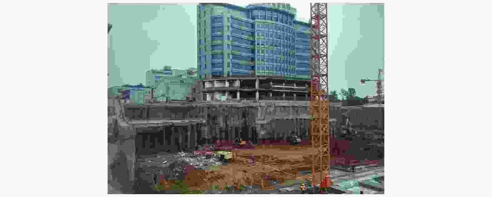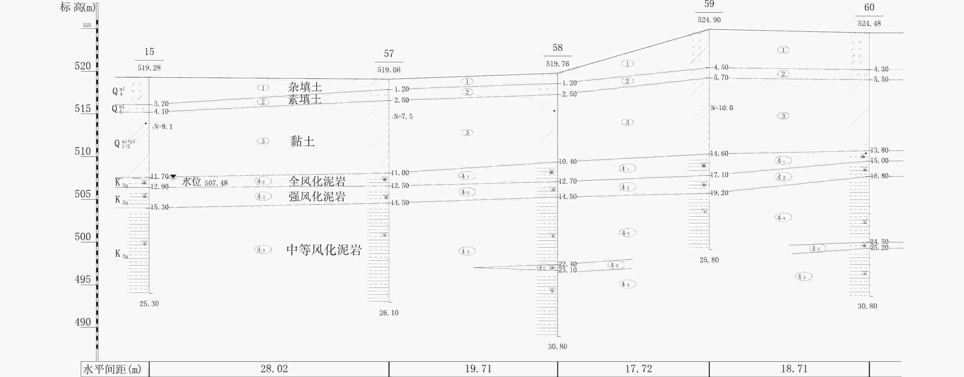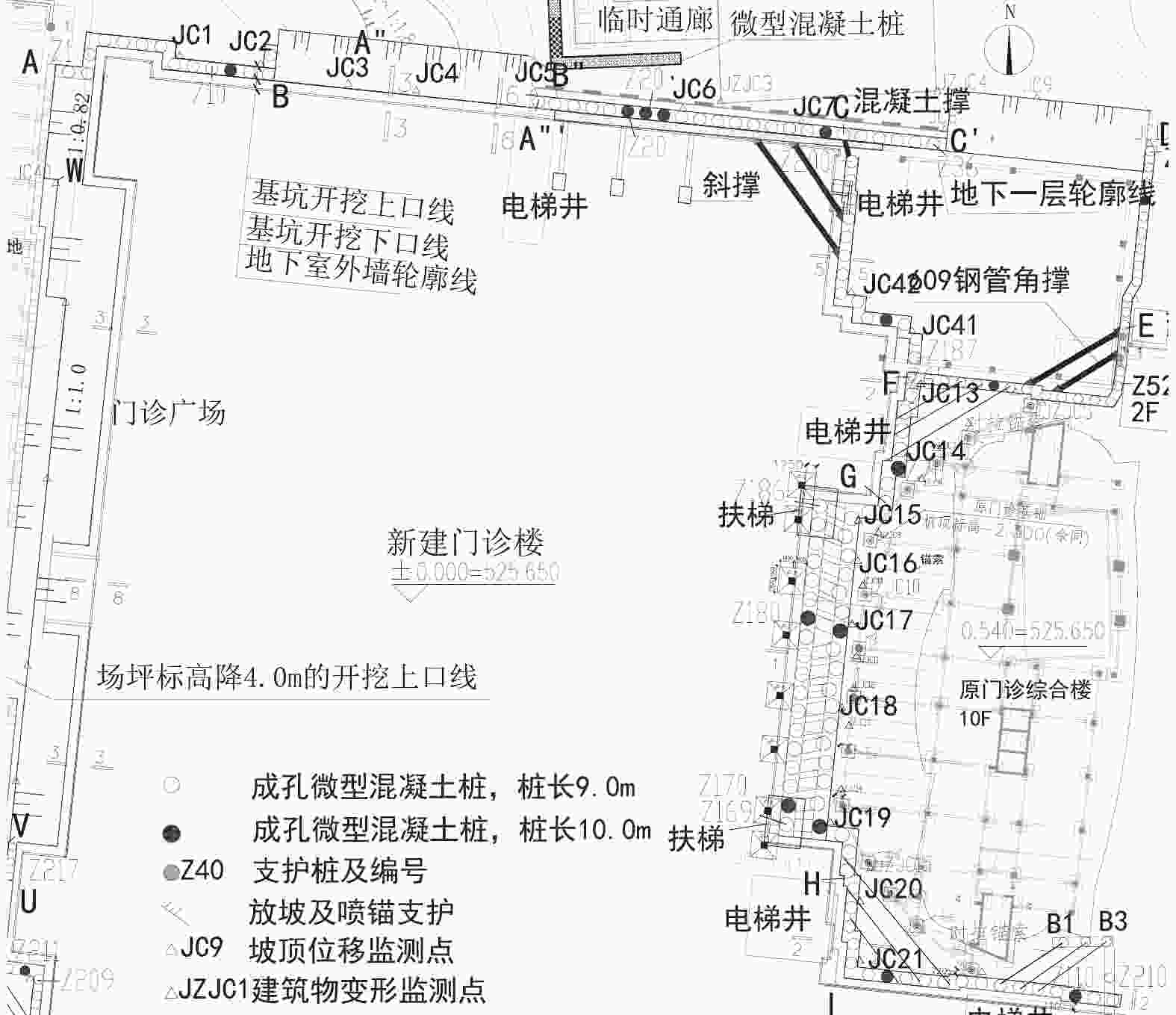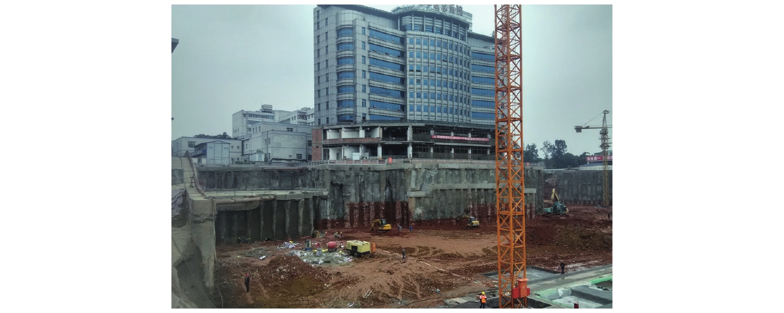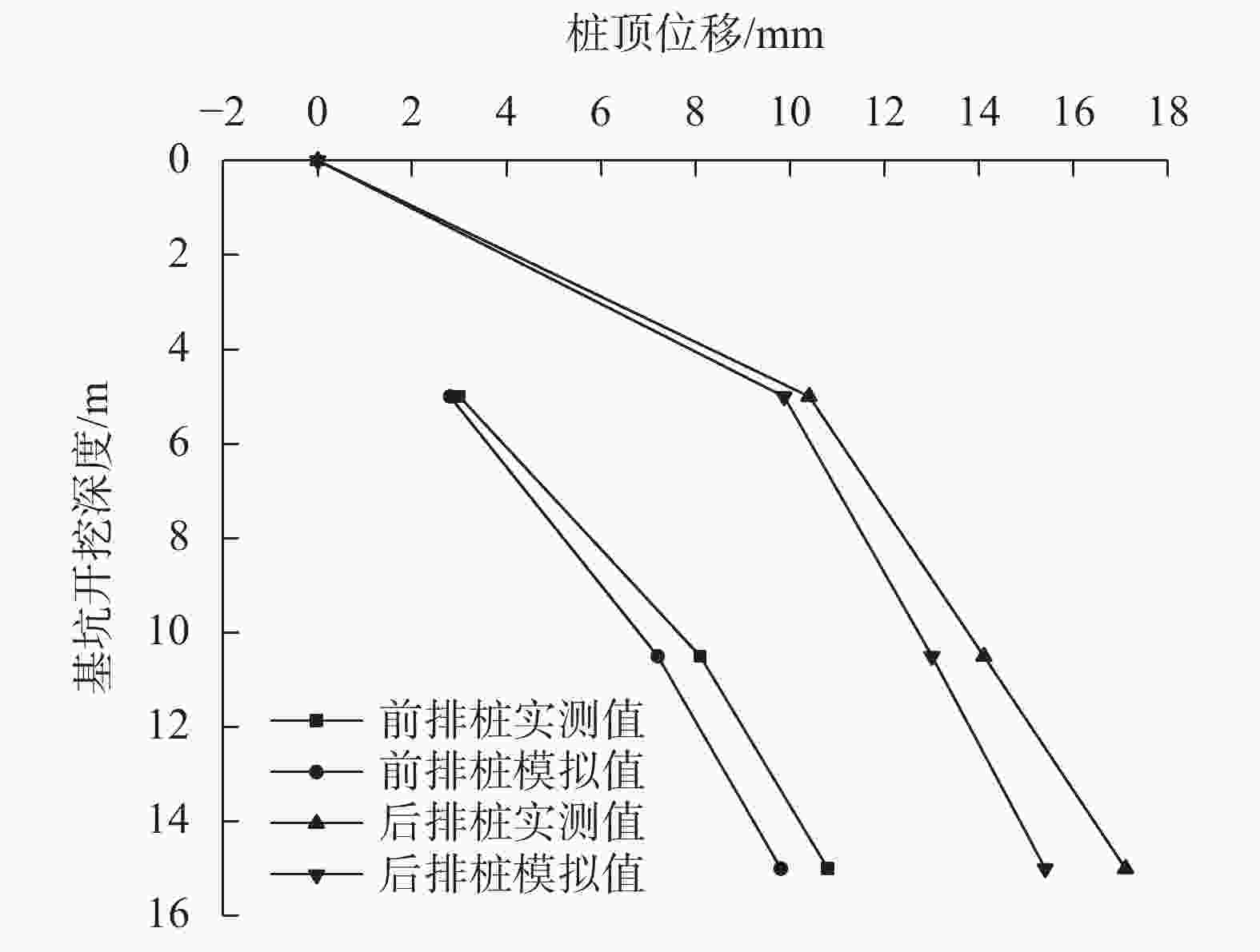 摘要: 成都某膨胀土基坑采用h型双排桩+锚索支护,采用FLAC 3D对支护结构进行数值模拟,并从桩排间距、桩顶高差及桩底高差方面进行分析优化。分析结果表明:排距小于5d(d为桩径)时,增加排距会使桩身受力分布趋向合理;随前排桩顶降低,后排桩分担弯矩和剪力增加,但后排桩剪力最大值小于前排桩;随后排桩桩底提高,后排桩弯矩和剪力急剧减小,并出现不合理分布。根据数值分析结果对该工程h型双排桩设计进行了优化,同时在前后排桩连系梁间设置支撑盲沟,于桩间设置仰斜式泄水孔,有效地减弱了膨胀土在大量卸荷后发生松弛,避免了膨胀土因含水量增加抗剪强度降低带来的不利影响。基坑监测数据表明基坑变形控制效果较好,同时验证了数值分析模型的合理可靠性。Abstract: In a foundation pit located in an expansive soil area in Chengdu, an h-type double-row pile + anchor cable support system was employed. FLAC 3D was used to conduct numerical simulations analyzing the effects of varying pile row spacing, and differences in pile top and bottom elevations. The analysis shows that when row spacings are less than five times the pile diameter (5d), increasing the spacing leeds to more reasonable force distribution on the piles. As the top of the front pile decreases, the bending moment and shear force shared by the rear pile increase, yet its maximum shear force remains lower than that of the front row. Elevating the rear row pile bottom resulted in a sharp decrease and misallocation of its bending moment and shear force. Based on these findings, the h-type double-row pile design was optimized by adding supporting blind ditches between tie beams and inclined drainage holes between piles, effectively mitigating expansive soil relaxation and preventing shear strength reduction due to moisture increases. Monitoring data confirmed effective deformation control and validated the reliability of the numerical model.-