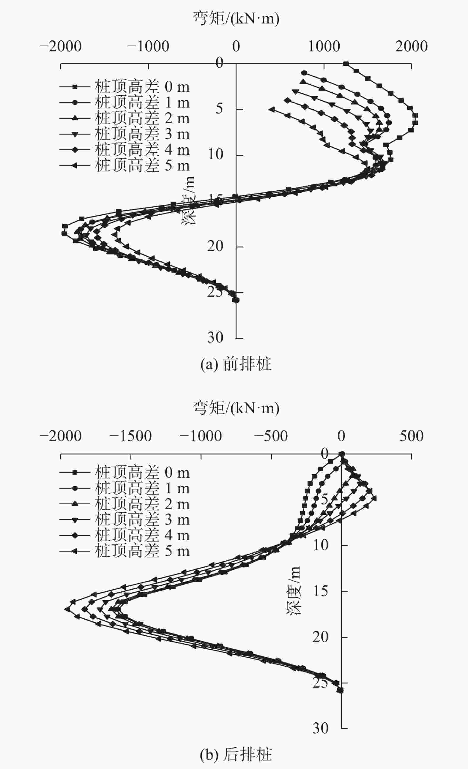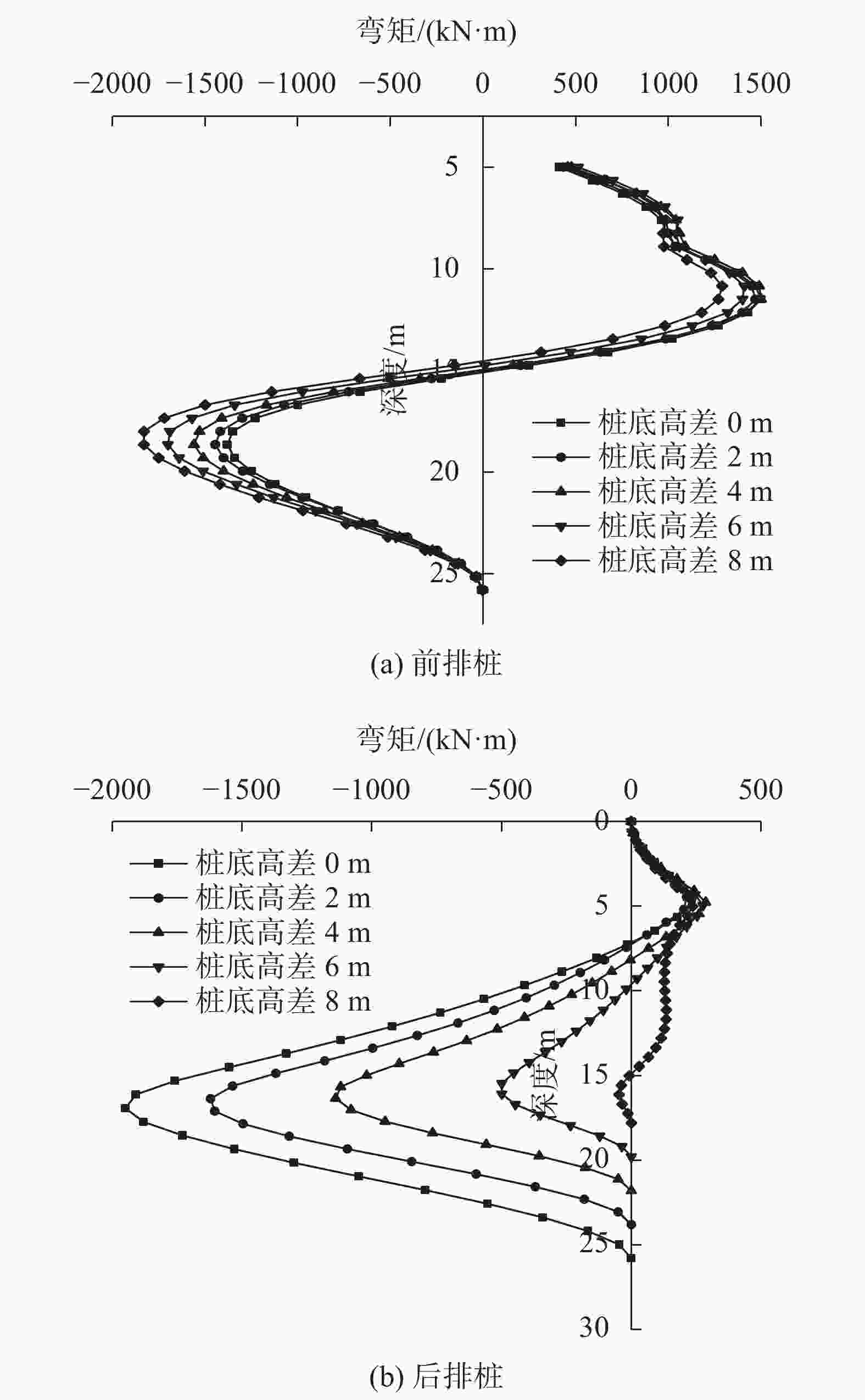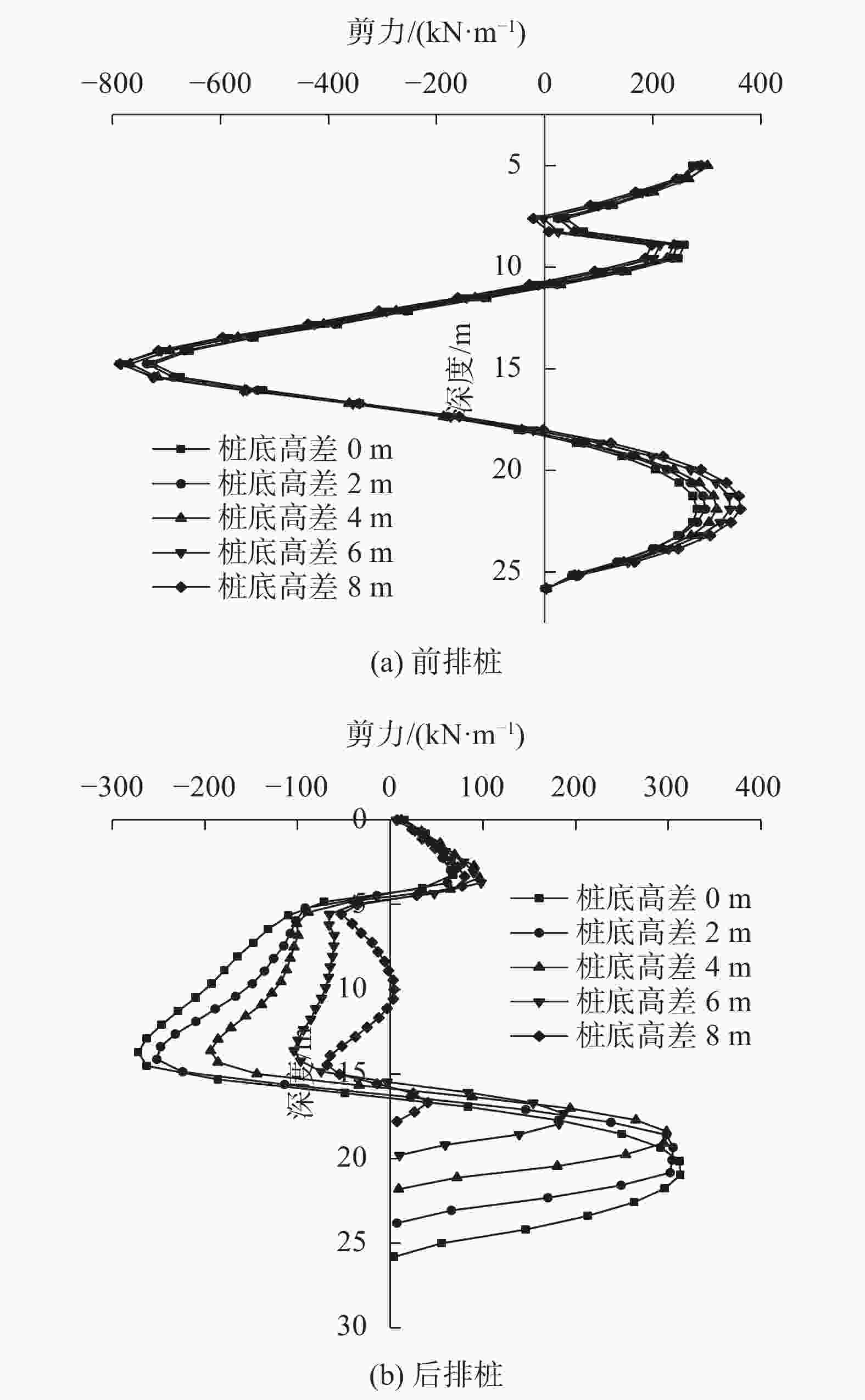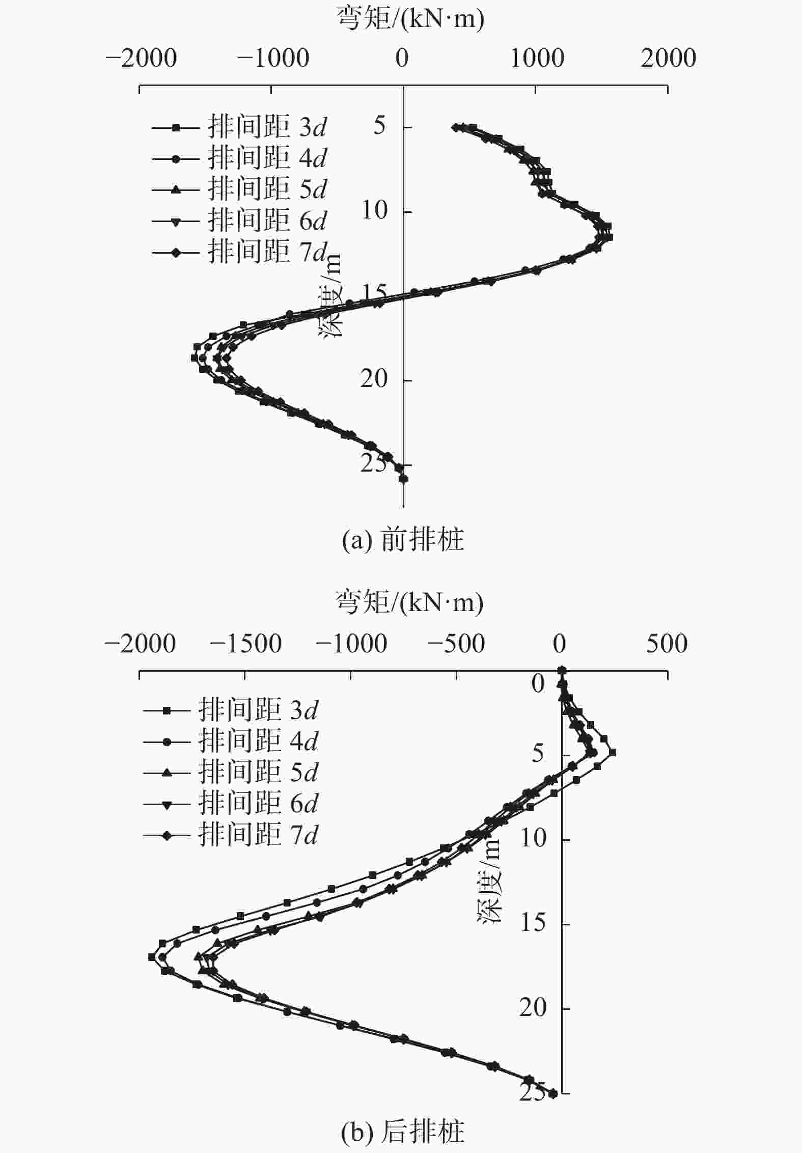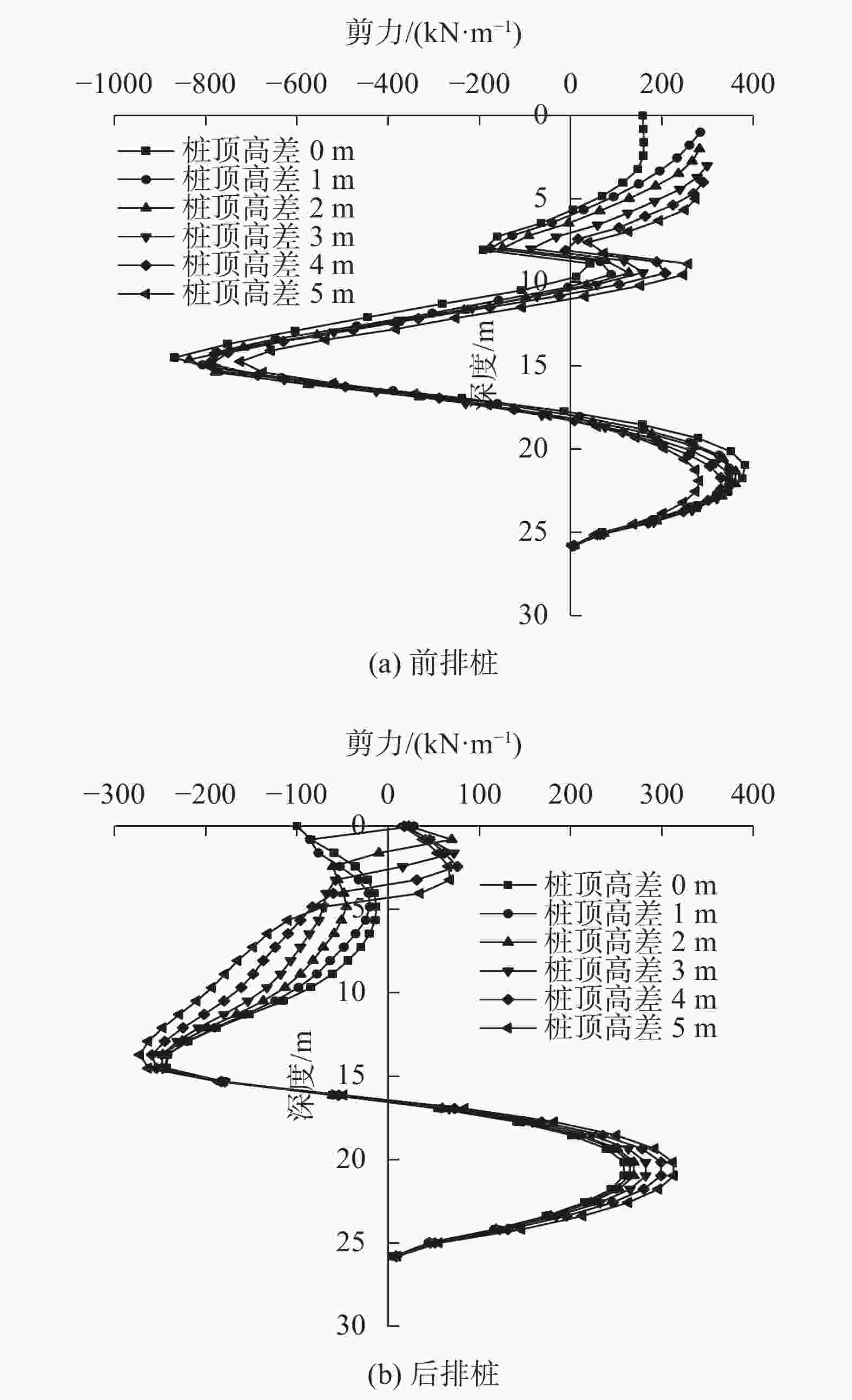 /GPa泊松比 桩单元 2400 30 0.30 梁单元 2200 25 0.25 表 3 支护结构优化前后参数 桩参数 工况 优化前 优化后 桩排间距 3.0d 3.2d 桩顶高差 4.0 m 5.0 m 桩底高差 0 m 4.0 m