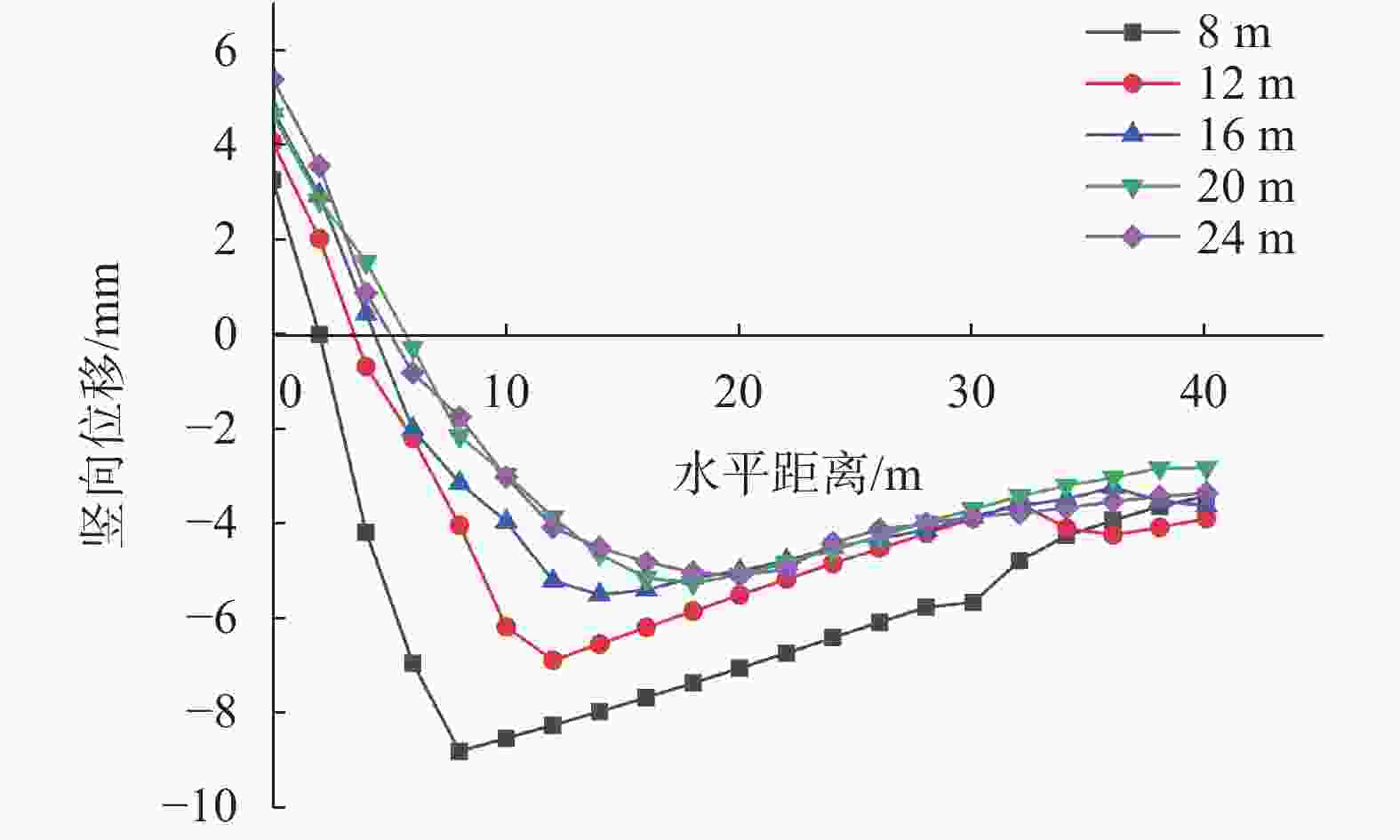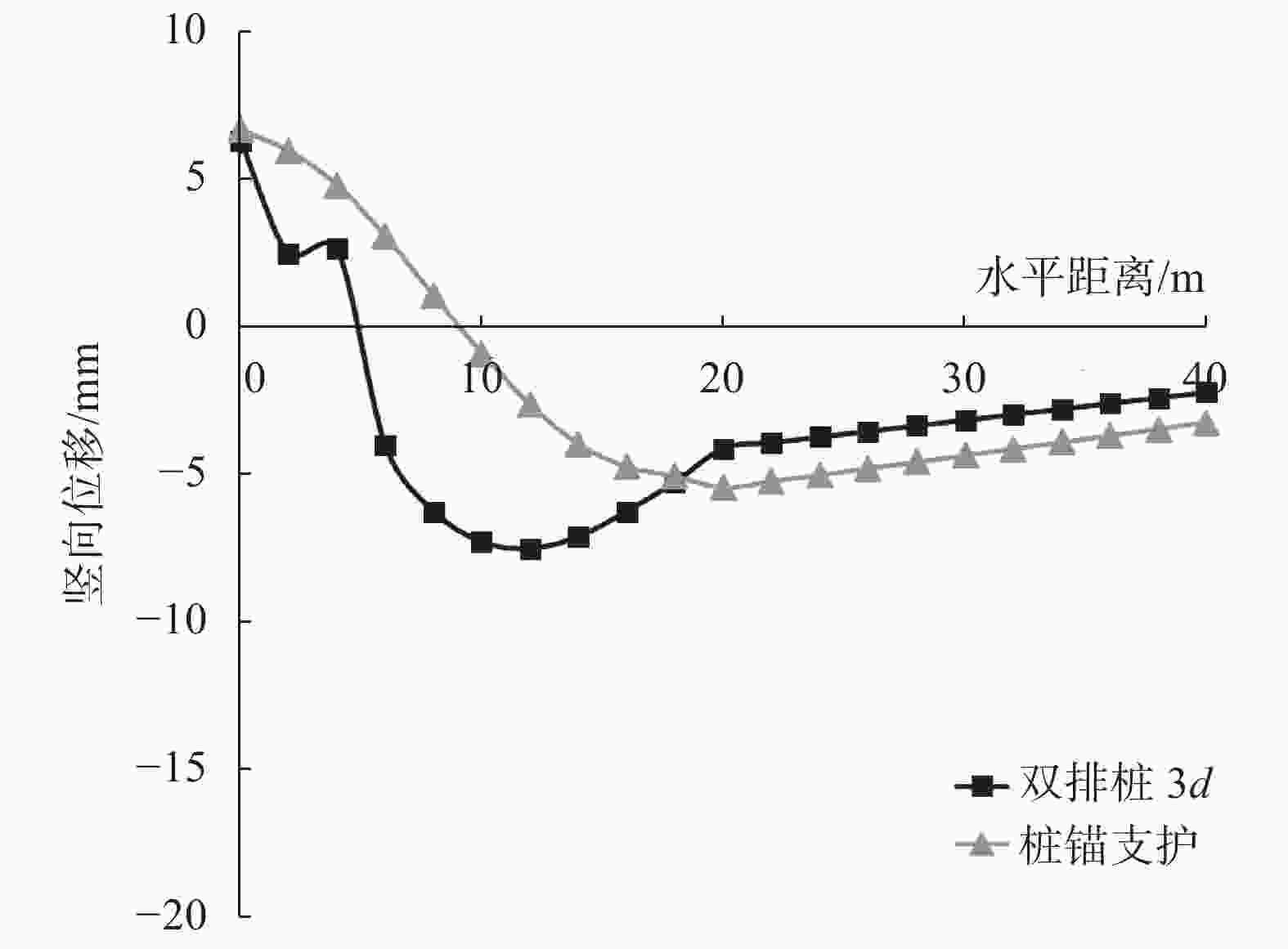 图  13  不同支护体系下墙后土体竖向位移曲线