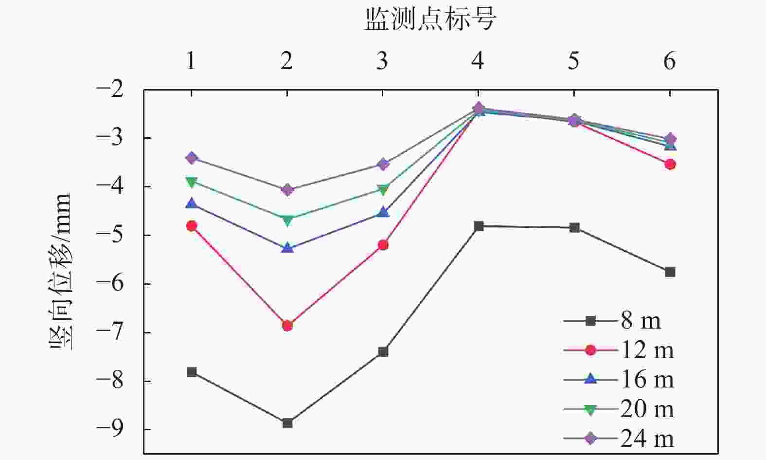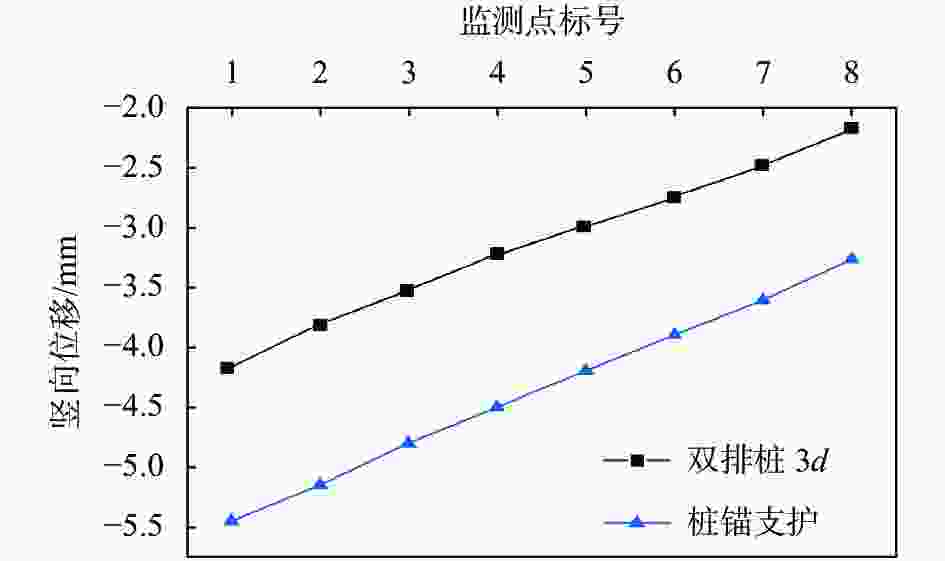图  14  不同支护体系下建筑物竖向位移