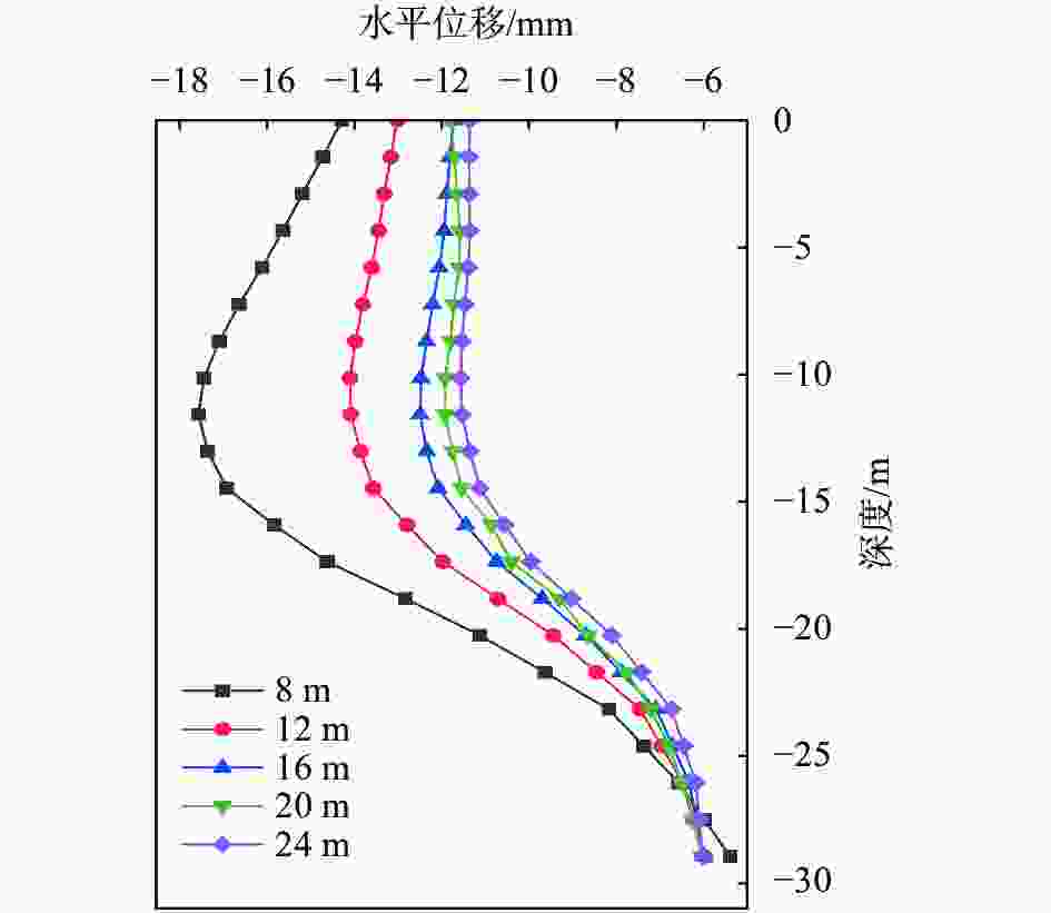图  15  不同间距下支护水平位移曲线图