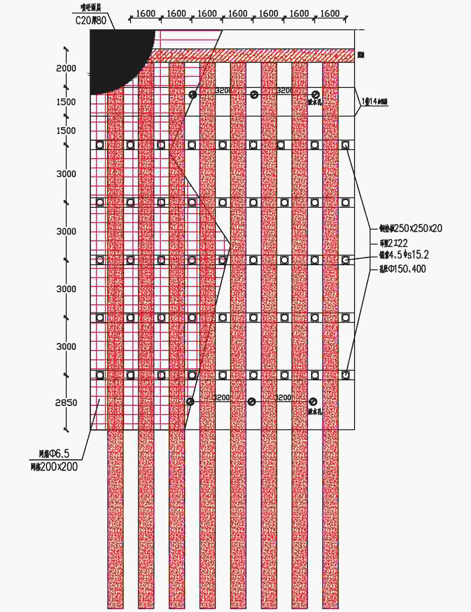 图  2  AB段支护正立面图(单位:mm)