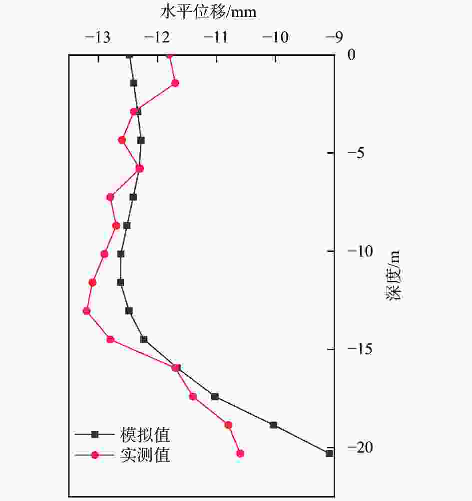 图  8  K13号桩深层水平位移模拟值与实测值对比