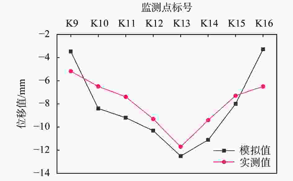 图  9  基坑北侧桩顶水平位移模拟值与实测值对比
