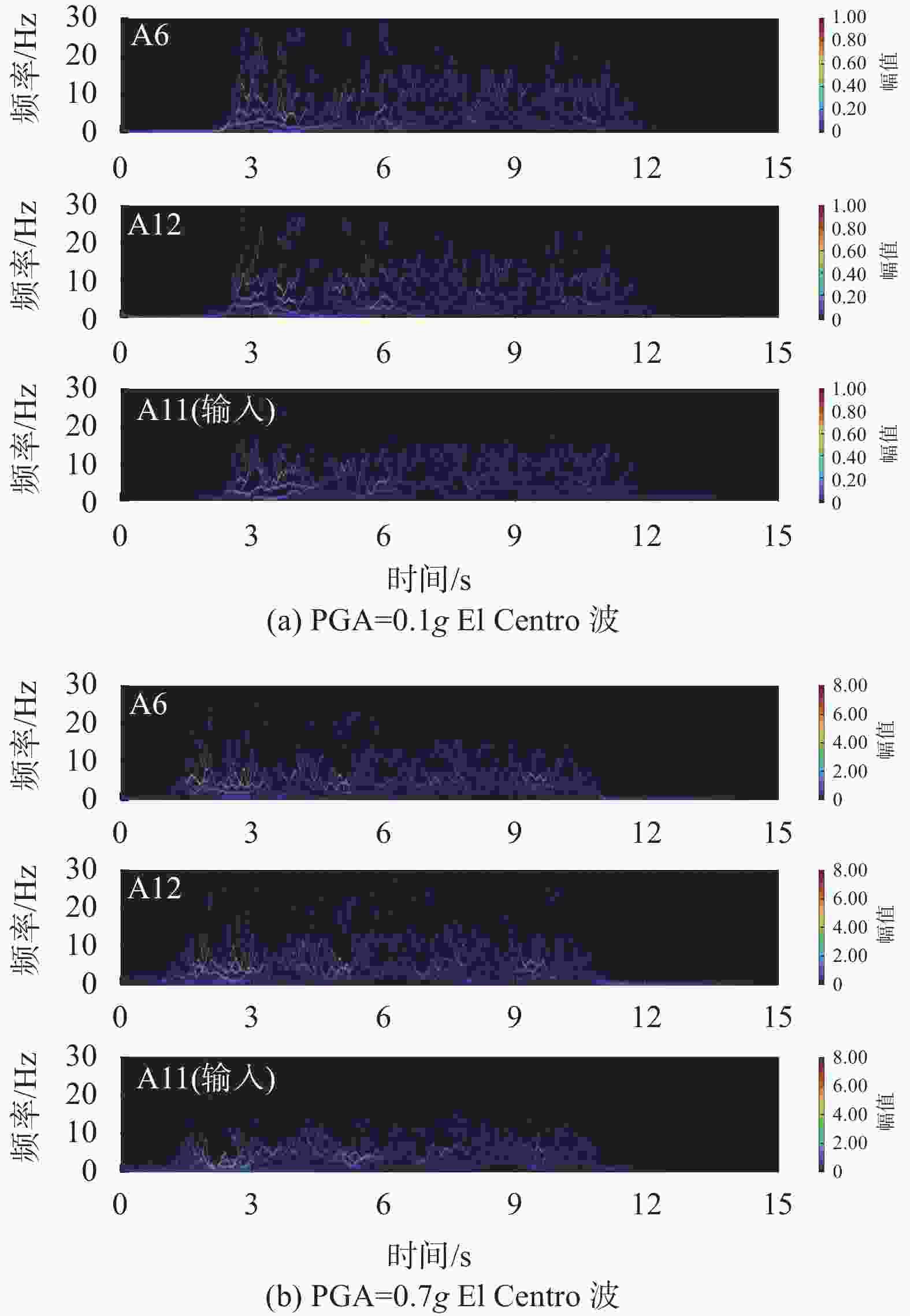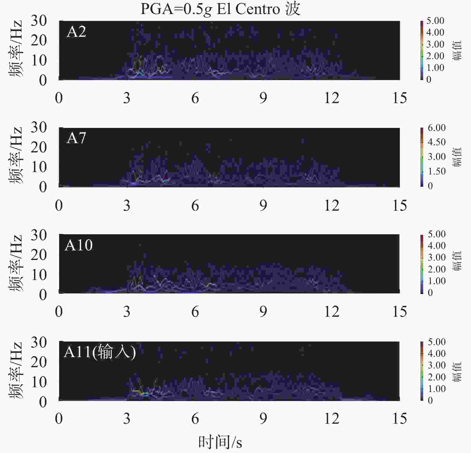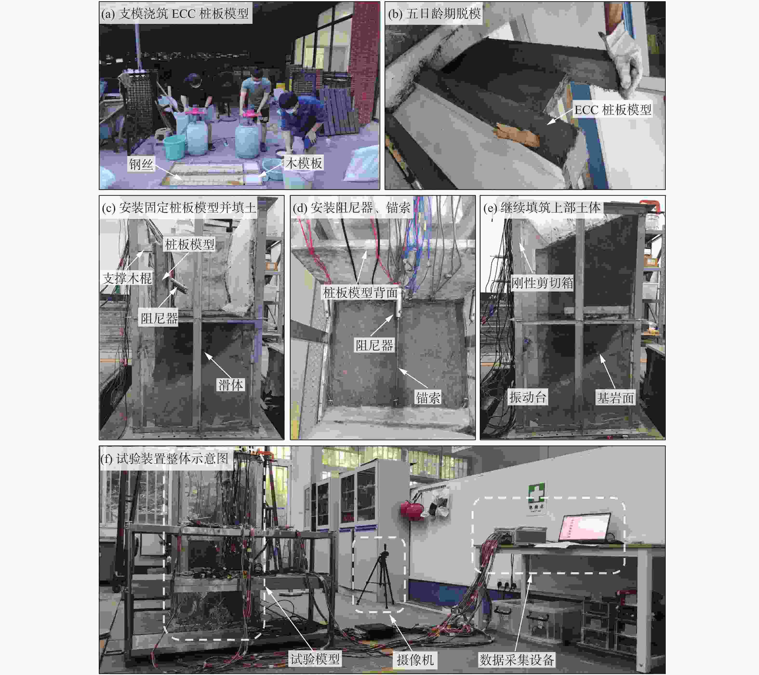 摘要: 为增强结构抗震韧性,减、隔震技术及高性能材料已在建筑结构和桥梁领域得到广泛应用,而岩土支挡结构的抗震性能优化研究还相对落后。基于ECC高韧性材料与黏滞阻尼减震技术构建了一种耗能型桩锚结构,通过振动台试验对其抗震性能进行了评估。研究主要从加速度响应、希尔伯特谱变化以及动态剪应力–剪应变等方面分析了新型结构的动力响应特性。分析表明,耗能型桩锚结构会使浅表土体消耗地震能量增多,从而有效降低传递至桩身的破坏能量,减缓支护结构的损伤破坏。此外,研究还发现希尔伯特谱能准确描述地震波时频特性,全面展示结构动力特性变化。研究结果可为锚索抗滑桩结构抗震性能优化设计提供参考依据。Abstract: To enhance the seismic resilience of structures, isolation and damping technologies along with high-performance materials have been widely adopted in the construction of buildings and bridges. However, optimizing seismic performance in geotechnical retaining structures remains relatively underdeveloped. Therefore, this study introduced an energy-dissipating pile-anchor structure developed using Engineered Cementitious Composite (ECC) materials and viscous damping technology, and its seismic performance was assessed through shaking table tests. The dynamic response characteristics of the new structure were analyzed, focusing on acceleration response, Hilbert spectral changes, and dynamic shear stress-strain behaviors. The analysis indicates that the energy-dissipating pile-anchor system increases the energy absorption of superficial soil layers during seismic events, effectively reducing the energy transmitted to the pile body and thus mitigating damage to the support structure. Additionally, the research found that the Hilbert spectrum accurately describes the time-frequency characteristics of seismic waves, providing a comprehensive view of the structural dynamics. These results offer references for the optimization of seismic resilience in anchor-supported slide-resistant pile structures.