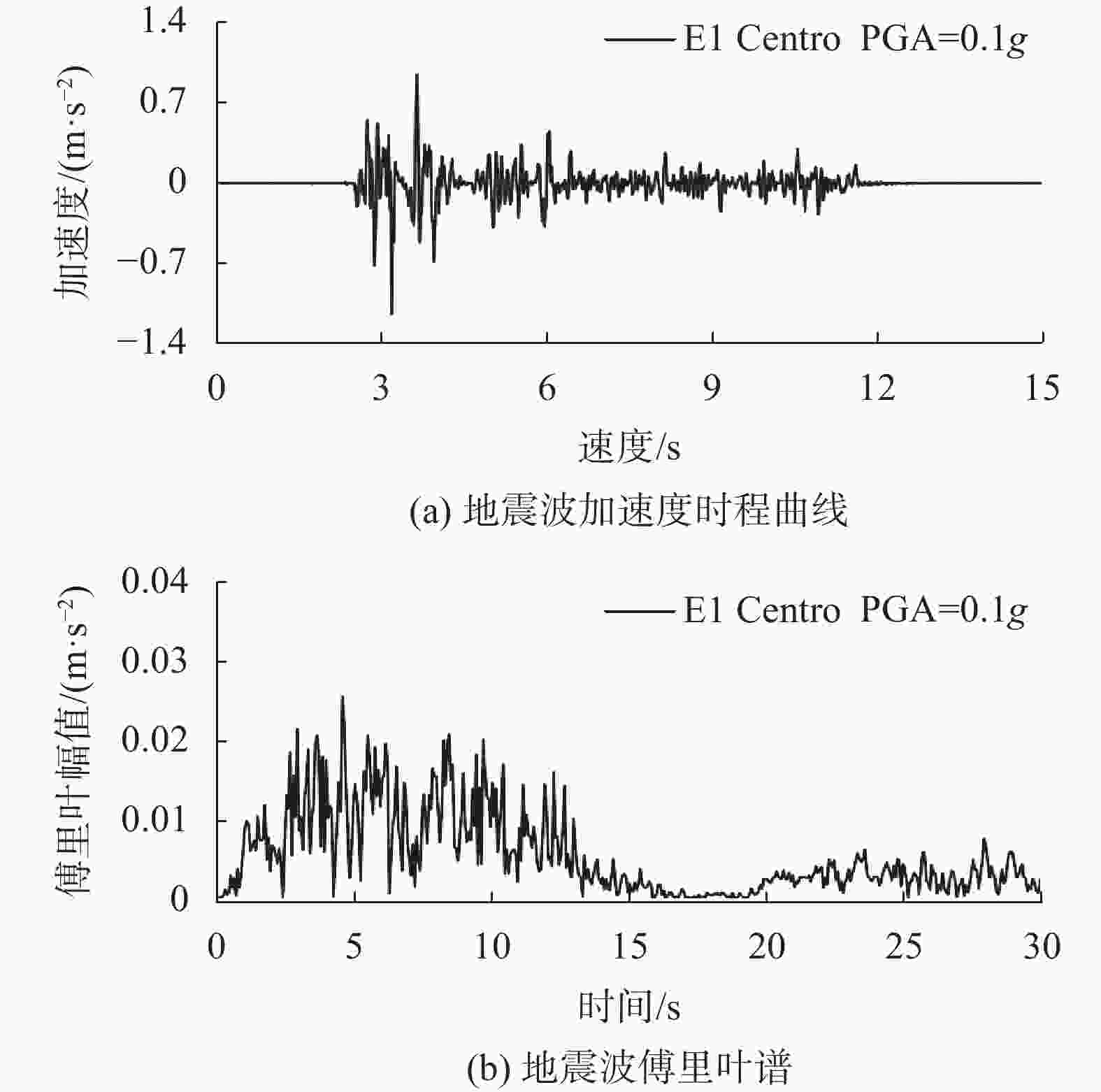 掺量)PVA纤维3.2 7.2 1.3 >2.5 表 5 加载工况表 工况 地震波 输入峰值加速度 1 白噪声 0.05g 2 El Centro 0.1g 3 白噪声 0.05g 4 El Centro 0.2g 5 白噪声 0.05g 6 El Centro 0.3g 7 白噪声 0.05g 8 El Centro 0.4g 9 白噪声 0.05g 10 El Centro 0.5g 11 白噪声 0.05g 12 El Centro 0.6g 13 白噪声 0.05g 14 El Centro 0.7g 15 白噪声 0.05g