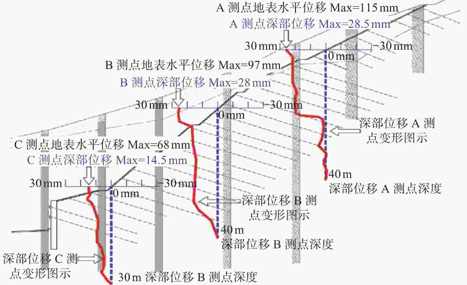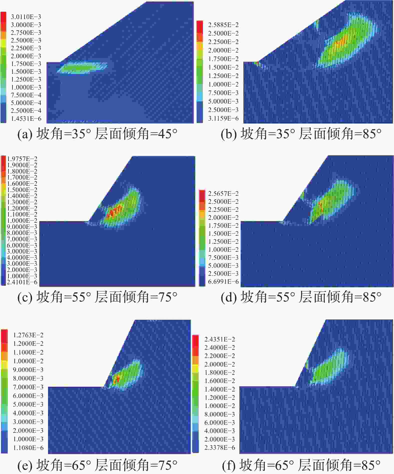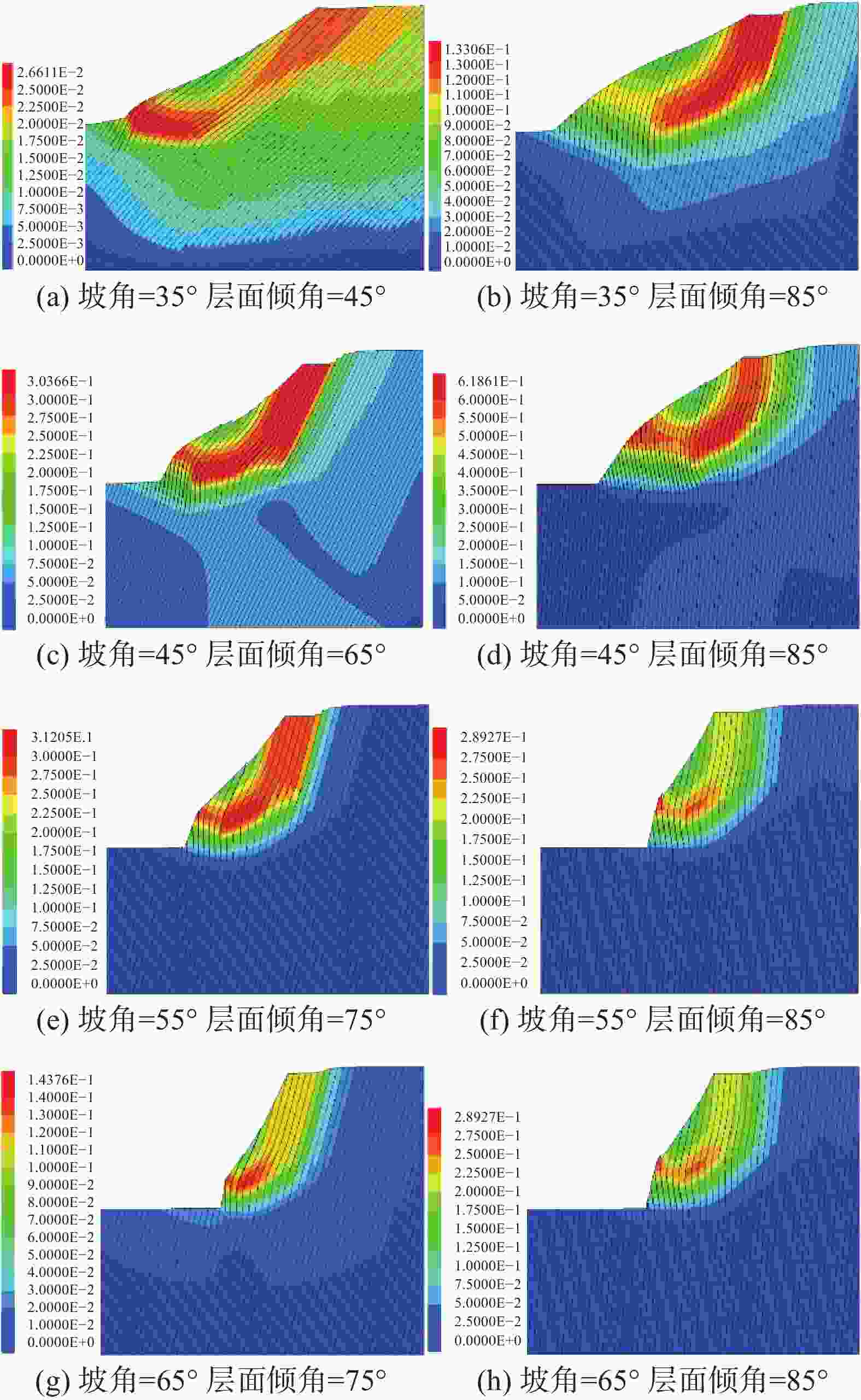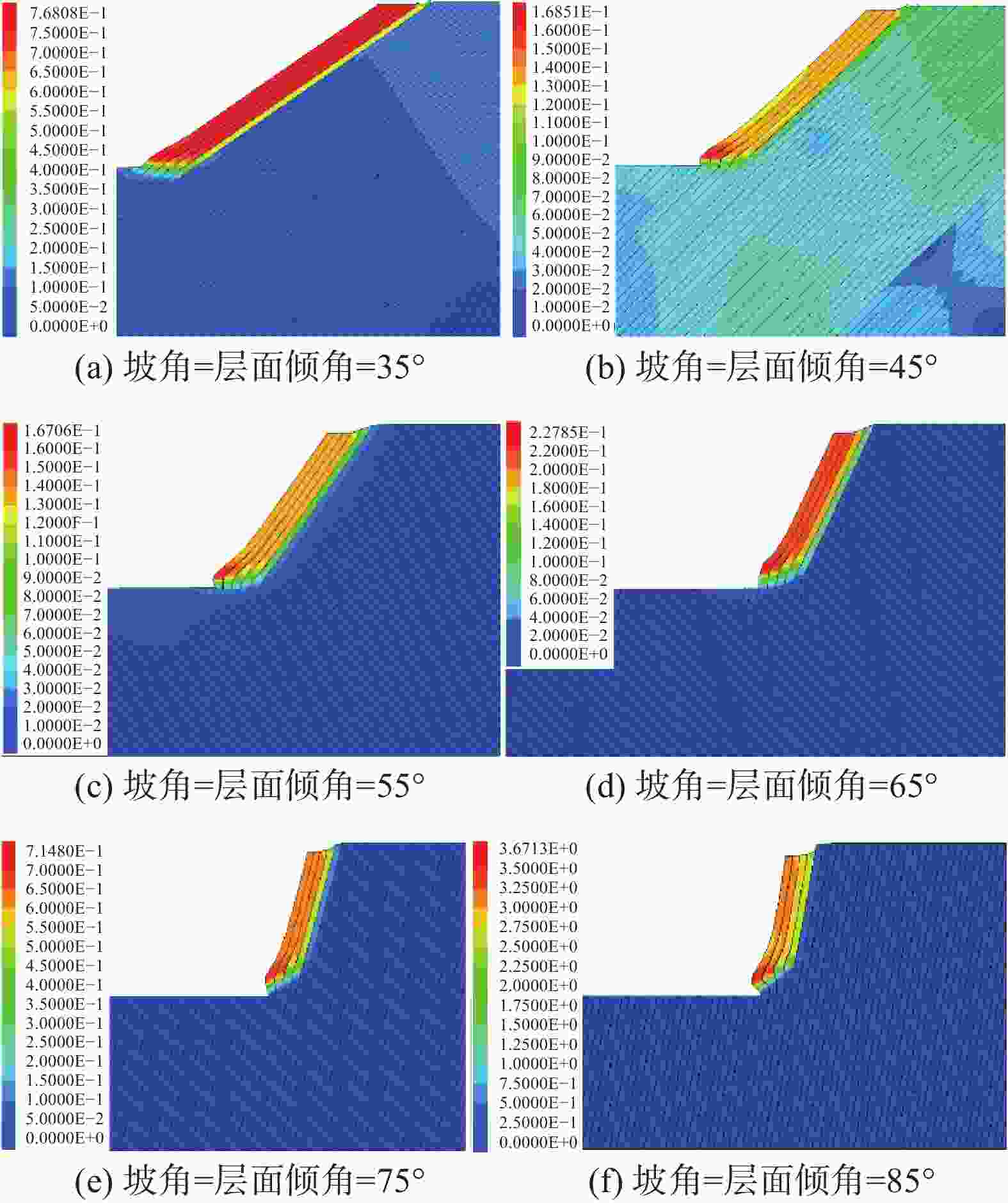 摘要: 大量工程实践表明,非滑动破坏的顺层边坡可能存在溃屈和倾倒的变形、破坏机制。为研究两种特殊机制的产生机理和支护方案,通过离散元数值模拟方法和典型工程项目的相关数据分析,结合层状岩体的破坏试验,研究了顺层边坡产生溃屈和倾倒的基本条件及变形、破坏规律。结果表明:对于顺层高边坡,当边坡坡角与岩层层面倾角相同或接近时,在表层层状岩体自重作用下,坡脚可能出现屈服并产生浅表垮塌,进而引发边坡产生溃屈破坏;当边坡坡角小于岩层层面倾角时,边坡可能产生倾倒变形;顺层边坡倾倒变形与后续的破坏模式需分开看待,最终的破坏形式受边坡变形演化的影响,存在动态变化过程。对于存在溃屈和倾倒变形破坏机制的顺层岩质边坡,建议在坡脚设置大刚度支撑结构进行支护。Abstract: A large number of engineering practices show that the deformation and damage mechanisms of toppling and buckling may exist in the non-sliding damaged bedding slopes. To study the generation mechanism and support scheme of two special mechanisms, the basic conditions, deformation, and failure laws of bedding slopes were studied through discrete element numerical simulation method and relevant data analysis of typical engineering projects, combined with failure tests of layered rock masses. The results show that: for high-rise slopes, when the slope angle is the same or close to the dip angle of the rock layer, the foot of the slope may yield and shallow collapse under the self-weight of the surface layered rock mass, leading to the buckling failuare of the slope; when the slope angle is smaller than the dip angle of the rock layer, the slope may undergo toppling deformation; the toppling deformation and subsequent failure modes of layered slopes need to be viewed separately, and the final failure form is influenced by the evolution of slope deformation and undergoes dynamic changes. For layered rock slopes with mechanisms of buckling and toppling deformation, it is recommended to install high-stiffness support structures at the foot of the slope for support.