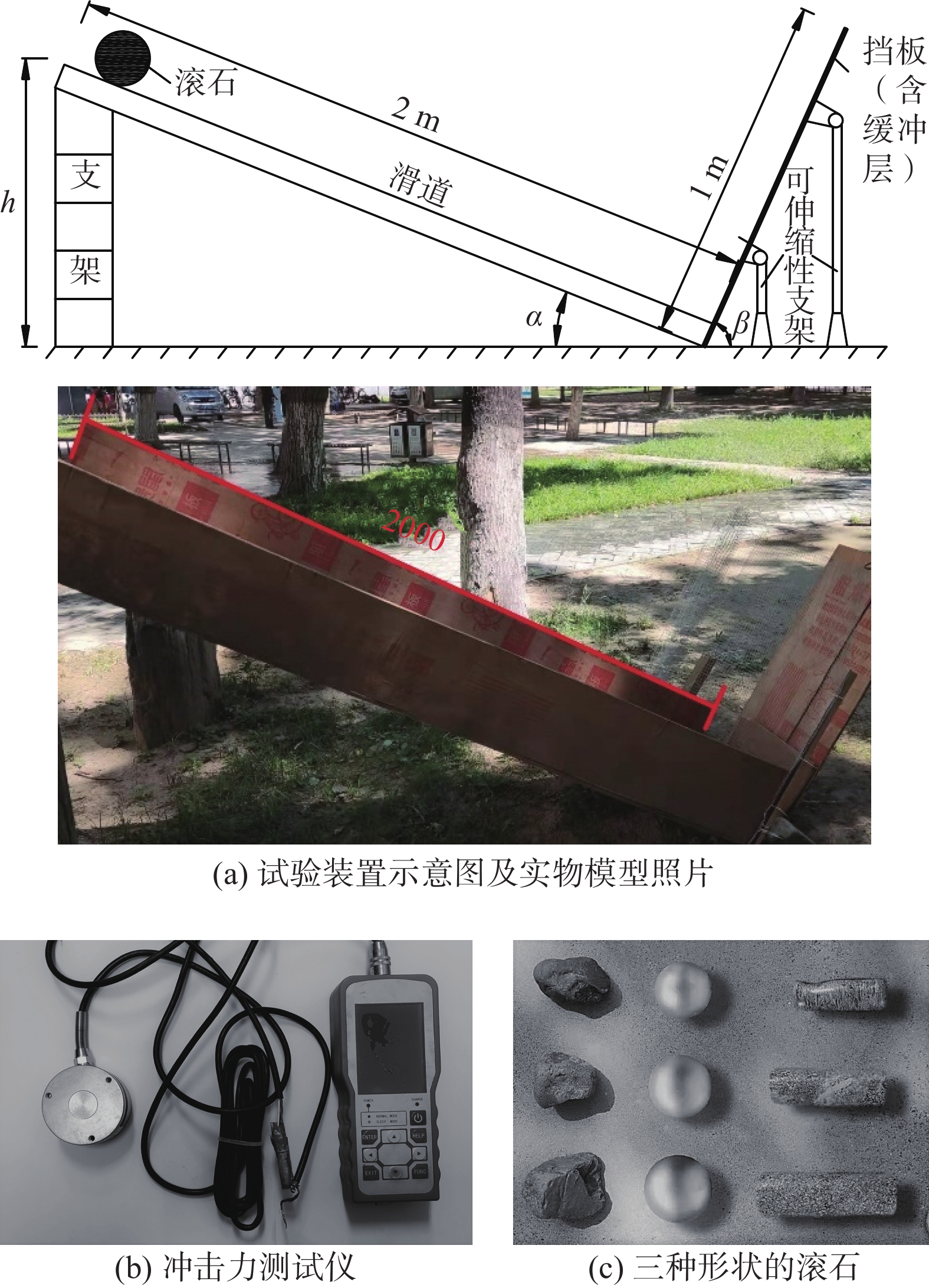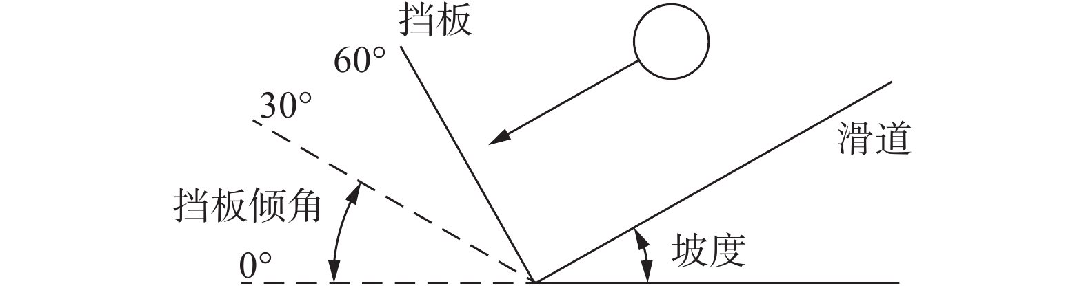 缓冲材料为砂土② 滚石高度h/m 0.5/0.75/1 ③ 滑道坡度α/(°) 30/45/60 ④ 防护结构倾角β/(°) 0/30/60 ⑤ 缓冲层厚度t/cm 0/2/4/6 -