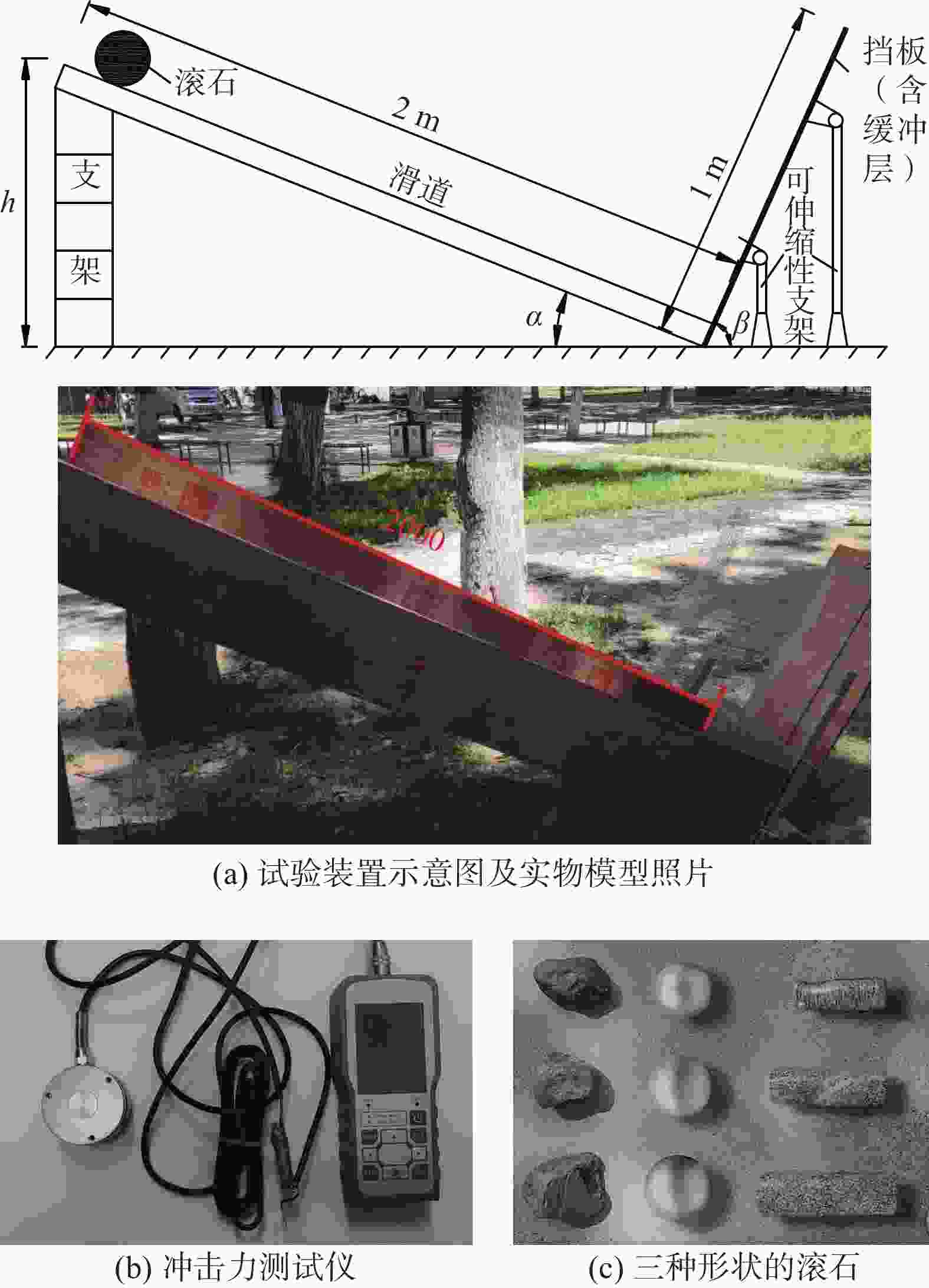 摘要: 崩塌滚石对防护结构造成的最大冲击力是进行防护结构设计的前提和基础,因而对其进行准确预测具有重要的工程意义。为了探究不同滚石参数及防护结构特征条件下,滚石对防护结构的最大冲击力影响因素,研制了一套滚石冲击力测试装置,通过试验研究了在滚石质量、滚石高度、边坡坡度、防护结构倾角与缓冲层厚度等不同工况下,球形、柱形及不规则形等3种不同形状滚石对防护结构的最大冲击力。试验结果表明:滚石对防护结构的最大冲击力随滚石质量和高度的增加而呈线性增加,随边坡坡度和防护结构倾角的增加而迅速增加,随缓冲层厚度增加而线性减小。试验发现滚石形状和高度对防护结构的最大冲击力会造成较大的离散性,不规则形状滚石对防护结构最大冲击力的离散性主要源于不规则形状滚石造成的滚石运动过程的复杂性和阻拦冲击过程的不确定性,认为滚石冲击姿态及其与防护结构的接触方式对防护结构最大冲击力有着非常重要的影响。研究结果可为滚石灾害的防治及防护结构的设计提供参考。Abstract: The maximum impact force caused by the rockfall on protective structures is the premise and basis for the design of protective structures, so it is of great engineering significance to accurately predict it. Therefore, to explore the influence factors of the maximum impact force caused by the rockfall on the protective structure under different rockfall parameters and protective structure characteristics, a set of rockfall impact test device was designed. The maximum impact of the rockfall of three different shapes, such as spherical, cylindrical and irregular, on the protective structure under different the following conditions, such as rockfall mass, rockfall height, slope gradient, protective structure angle and buffer layer thickness, was studied. The test results show that the maximum impact force of the rockfall on the protective structure increases linearly with the increase of the mass and height of the rockfall, increases rapidly with the increase of the slope gradient and the angle of the protective structure, and decreases linearly with the increase of the buffer thickness. In addition, it is found that the maximum impact of the shape and height of the rockfall on the protective structure will cause greater dispersion, and the maximum impact of the irregular shape of the rockfall on the protective structure is mainly due to the complexity of the rockfall motion process and the uncertainty of the impact blocking process caused by the irregular shape of the rockfall. It is concluded that the impact attitude of the rockfall and its contact mode with the protective structure have a very important influence on the maximum impact force of the protective structure. The research results can provide reference for the prevention and control of rockfall disasters and the design of protective structures.