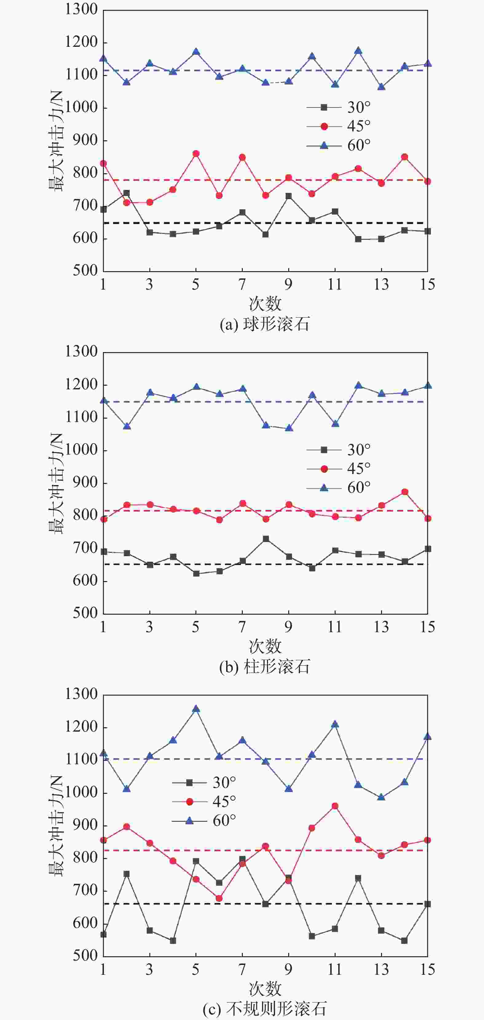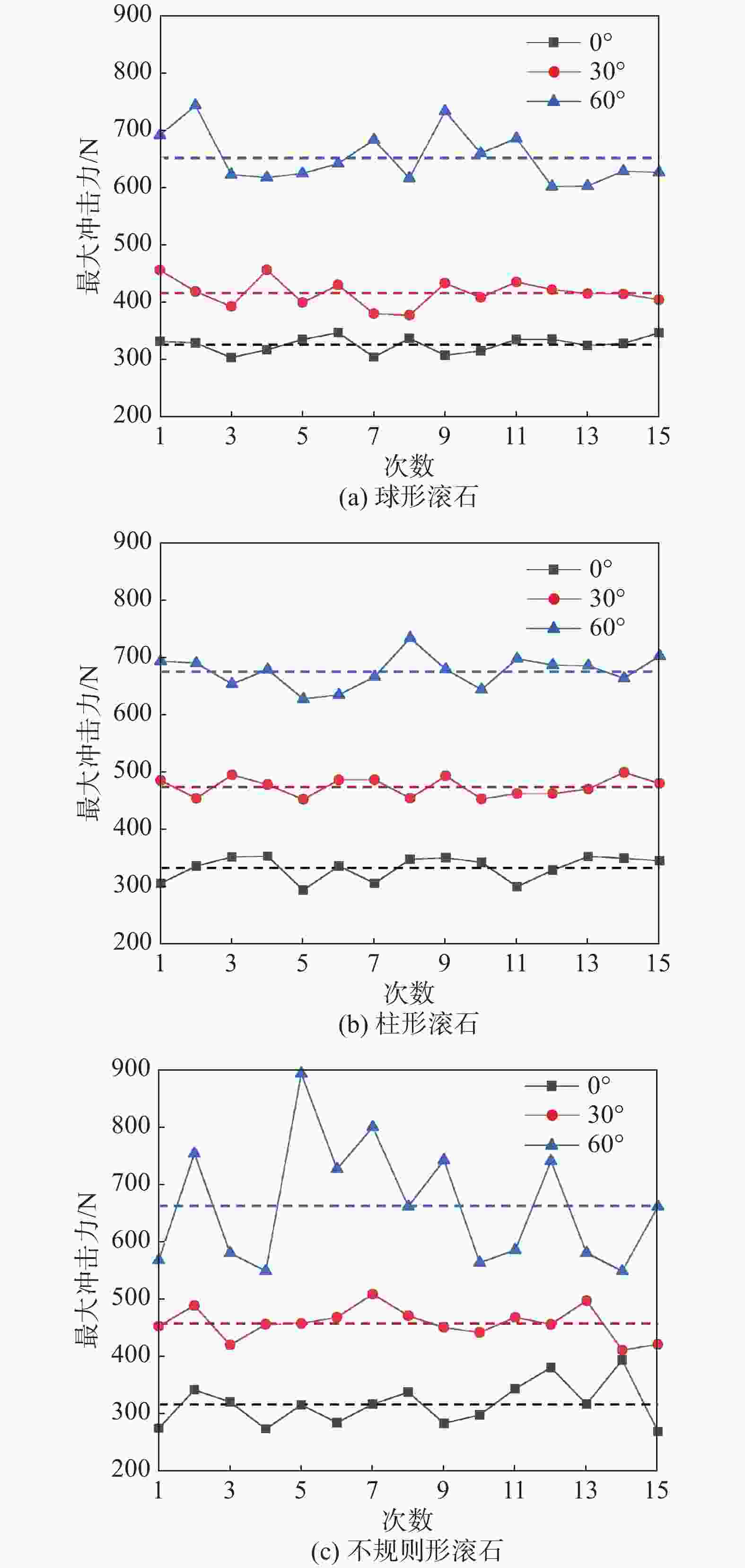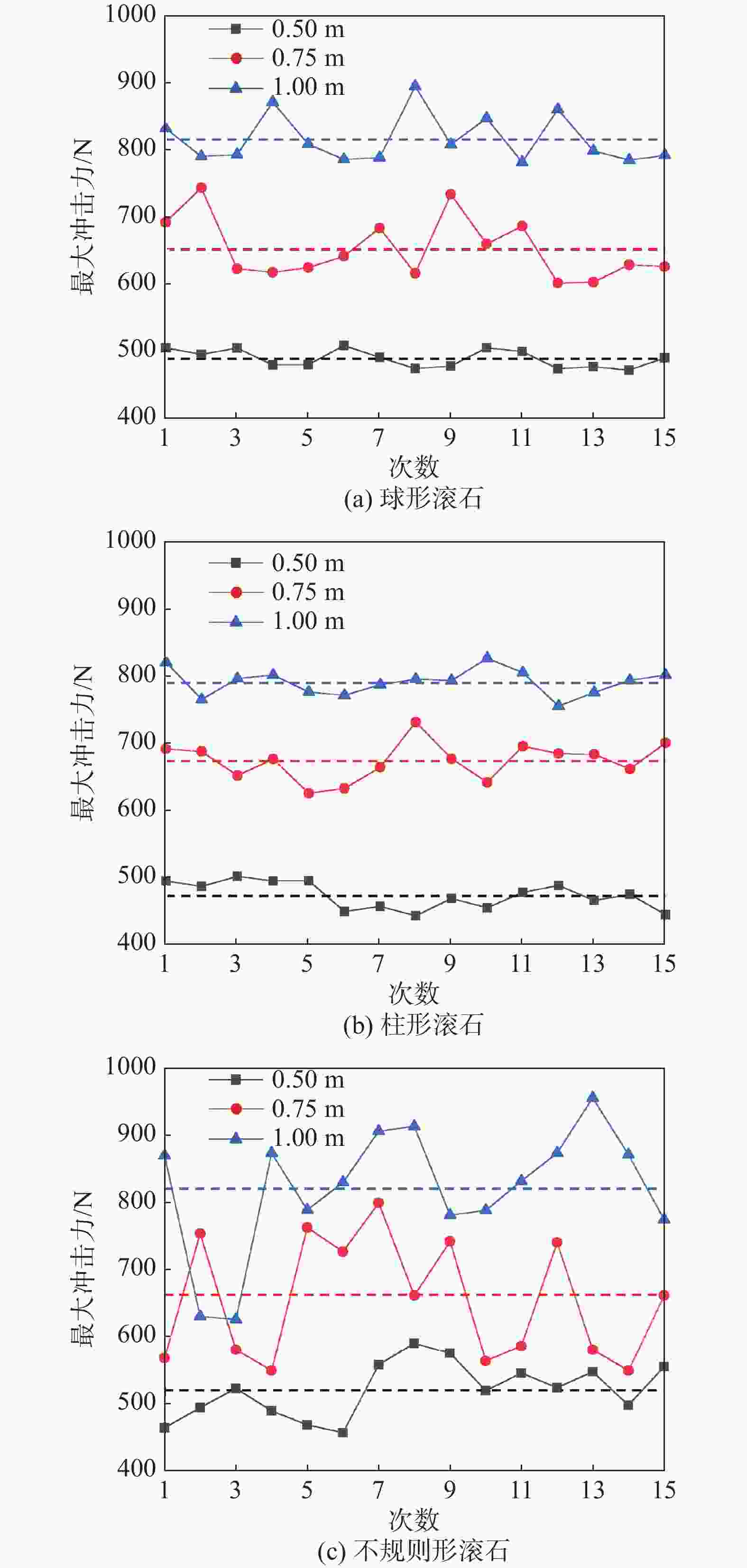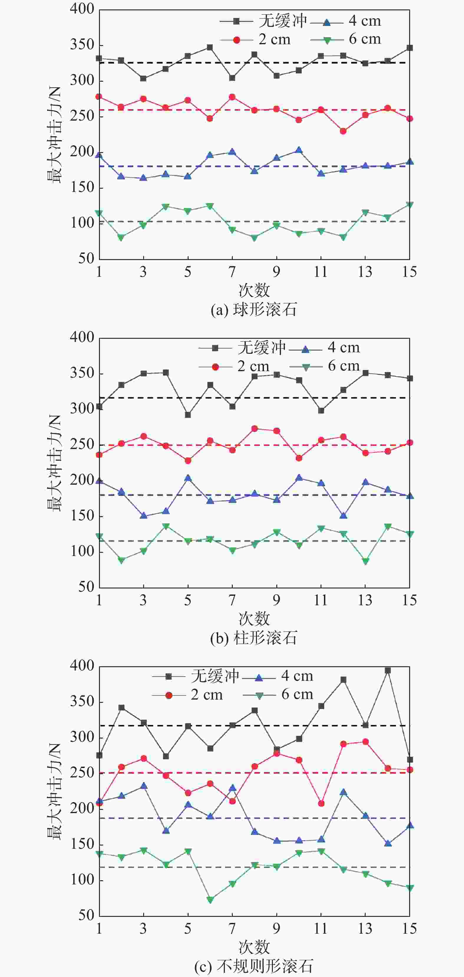 序号 工况 参数取值 基准条件 ① 滚石质量m/kg 1/2/3 滚石质量2 kg,