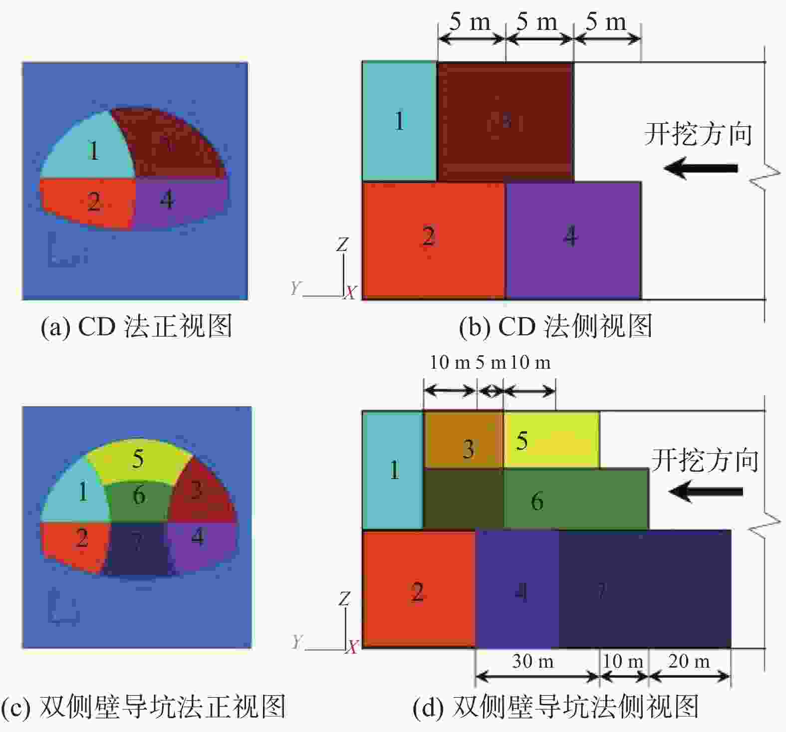 摘要: 对于浅埋超大断面扁平结构隧道而言,合理的断面设计和工法选择关乎隧道建设的安全性。采用有限差分计算软件FLAC 3D对深汕合作区通港大道2号隧道进行扁平率和工法优化设计。研究了4种不同扁平率和2种不同工法对隧道围岩变形和应力分布的影响,运用熵权法确定塑性区面积、拱顶沉降、地表沉降等指标的权重,对各方案进行综合评分和比选,提出所研究隧道工程的最优扁平率和工法匹配方案。数值模拟结果表明:采用扁平率为0.65的断面设计和双侧壁导坑法开挖是最优的方案。现场施工监测数据与数值模拟结果有较高的吻合度,验证了所建立的数值模型的准确性和所提出的优化施工方案的可行性。研究结果可为浅埋超大断面扁平结构隧道的建设提供理论支撑和数据参考。Abstract: For shallow-buried oversized cross-section flat structure tunnels, reasonable cross-section design and construction method selection are crucial for ensuring tunnel construction safety. In this study, finite difference computation software FLAC 3D was employed to optimize the flat ratio and construction method for Tunnel No.2 of Tonggang Road in the Shenzhen-Shanwei Cooperation Zone. The effects of four different flat ratios and two distinct construction methods on the deformation and stress distribution of the surrounding rock were analyzed, and the entropy weight method was utilized to determine the weights of indicators such as plastic zone area, vault settlement, and ground settlement. Each scheme was evaluated through comprehensive scoring and comparison, leading to the proposal of the optimal flat ratio and construction method for the studied tunnel project. Numerical simulation results indicated that a section design with a flat ratio of 0.65 combined with the double-side drift excavation method represents the optimal solution. The high consistency between field construction monitoring data and numerical simulation results was demonstrated, validating the accuracy of the established numerical model and the feasibility of the proposed optimized construction scheme. The findings provide theoretical support and data references for the construction of shallow buried super-large sections of flat structure tunnels.