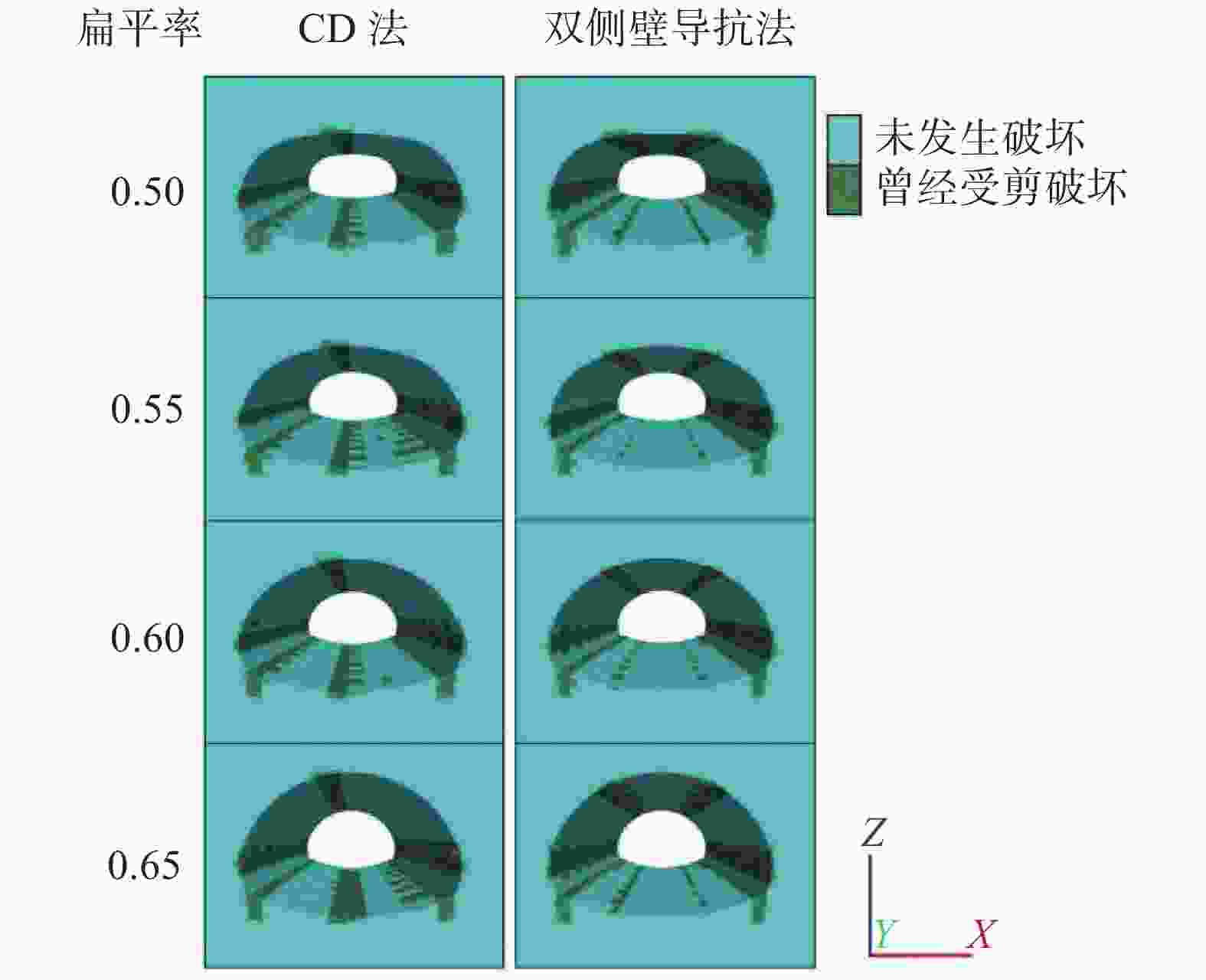[1] 韩艳红, 赵 智, 张 良. 扁平率对大跨度隧道二衬结构力学特性的影响分析[J]. 公路交通科技(应用技术版),2020,16(9):49-52. (HAN Y H, ZHAO Z, ZHANG L. Analysis of the effect on mechanical properties of second lining structures of large span tunnels by flatness ratio[J]. Road Traffic Science and Technology (Applied Technology Edition),2020,16(9):49-52. (in Chinese)HAN Y H, ZHAO Z, ZHANG L. Analysis of the effect on mechanical properties of second lining structures of large span tunnels by flatness ratio[J]. Road Traffic Science and Technology (Applied Technology Edition), 2020, 16(9): 49-52. [2] 曲海锋. 扁平特大断面隧道修筑及研究概述[J]. 隧道建设,2009,29(2):166-171. (QU H F. An overview on construction and research of super-large cross-section tunnels with low height-span ratios[J]. Tunnel Construction,2009,29(2):166-171. (in Chinese)QU H F. An overview on construction and research of super-large cross-section tunnels with low height-span ratios[J]. Tunnel Construction, 2009, 29(2): 166-171. (in Chinese) [3] 彭 波. 超大断面扁平结构隧道开挖方法数值模拟及优化研究[J]. 北方交通,2021(10):78-82. (PENG B. Research on numerical simulation and optimization of excavation method for flat structure tunnel with super-large section[J]. Northern Communications,2021(10):78-82. (in Chinese)PENG B. Research on numerical simulation and optimization of excavation method for flat structure tunnel with super-large section[J]. Northern Communications, 2021(10): 78-82. (in Chinese) [4] 唐 颖. 金鸡山特大跨度连拱隧道设计[J]. 公路,2007(8):216-220. (TANG Y. Design of Jinji Mountain large-span continuous-arch tunnel[J]. Highway,2007(8):216-220. (in Chinese)TANG Y. Design of Jinji Mountain large-span continuous-arch tunnel[J]. Highway, 2007(8): 216-220. [5] 李志刚, 丁文其, 杨重存, 等. 扁平特大断面公路隧道核心土模拟与分析[J]. 地下空间与工程学报,2007,3(4):627-632. (LI Z G, DING W Q, YANG C C, et al. Simulation and analysis of core rock in flat and large span highway tunnel[J]. Chinese Journal of Underground Space and Engineering,2007,3(4):627-632. (in Chinese) doi: 10.3969/j.issn.1673-0836.2007.04.010LI Z G, DING W Q, YANG C C, et al. Simulation and analysis of core rock in flat and large span highway tunnel[J]. Chinese Journal of Underground Space and Engineering, 2007, 3(4): 627-632. (in Chinese) doi: 10.3969/j.issn.1673-0836.2007.04.010 [6] 皇 民, 金沐妍. 韩门大断面隧道预留核心土法施工中软弱围岩变形预测与控制[J]. 河南工程学院学报(自然科学版),2022,34(2):19-23. (HUANG M, JIN M Y. College on the deformation prediction and control of weak rock using core soil method in Hanmen large section tunnel[J]. Journal of Henan University of Engineering,2022,34(2):19-23. (in Chinese)HUANG M, JIN M Y. College on the deformation prediction and control of weak rock using core soil method in Hanmen large section tunnel[J]. Journal of Henan University of Engineering, 2022, 34(2): 19-23. (in Chinese) [7] 张俊儒, 徐 剑, 龚彦峰, 等. 单跨5车道公路隧道工法优化及施工力学特性研究[J]. 隧道建设(中英文),2021,41(5):831-840. (ZHANG J R, XU J, GONG Y F, et al. Study on construction method optimization and construction mechanical characteristics of a single-span five-lane highway tunnel[J]. Tunnel Construction,2021,41(5):831-840. (in Chinese)ZHANG J R, XU J, GONG Y F, et al. Study on construction method optimization and construction mechanical characteristics of a single-span five-lane highway tunnel[J]. Tunnel Construction, 2021, 41(5): 831-840. (in Chinese) [8] 滕兆宝. 超大断面隧道不同开挖工法力学特征研究[J]. 建筑技术开发,2022,49(23):92-96. (TENG Z B. Study on mechanical characteristics of different excavation methods for super large section tunnels[J]. Building Technology Development,2022,49(23):92-96. (in Chinese) doi: 10.3969/j.issn.1001-523X.2022.23.032TENG Z B. Study on mechanical characteristics of different excavation methods for super large section tunnels[J]. Building Technology Development, 2022, 49(23): 92-96. (in Chinese) doi: 10.3969/j.issn.1001-523X.2022.23.032 [9] 关宝树. 隧道工程施工要点集[M]. 2版. 北京: 人民交通出版社, 2011. (GUAN B S. Key points of tunnel construction[M]. 2nd ed. Beijing: China Communications Press, 2011. (in Chinese)GUAN B S. Key points of tunnel construction[M]. 2nd ed. Beijing: China Communications Press, 2011. (in Chinese) [10] 王 建, 胡潇月. 特大断面公路隧道扁平率数值分析[J]. 公路交通技术,2014(3):90-94. (WANG J, HU X Y. Numerical analysis for flatness ratio of king-size section highway tunnels[J]. Technology of Highway and Transport,2014(3):90-94. (in Chinese) doi: 10.3969/j.issn.1009-6477.2014.03.022WANG J, HU X Y. Numerical analysis for flatness ratio of king-size section highway tunnels[J]. Technology of Highway and Transport, 2014(3): 90-94. (in Chinese) doi: 10.3969/j.issn.1009-6477.2014.03.022 [11] 陈卫忠, 王 辉, 田洪铭. 浅埋破碎岩体中大跨隧道断面扁平率优化研究[J]. 岩石力学与工程学报,2011,30(7):1389-1395. (CHEN W Z, WANG H, TIAN H M. Study of flat ratio optimization of large-span tunnel section in shallow broken rock mass[J]. Chinese Journal of Rock Mechanics and Engineering,2011,30(7):1389-1395. (in Chinese)CHEN W Z, WANG H, TIAN H M. Study of flat ratio optimization of large-span tunnel section in shallow broken rock mass[J]. Chinese Journal of Rock Mechanics and Engineering, 2011, 30(7): 1389-1395. (in Chinese) [12] 郭新新, 汪 波, 王永琪, 等. Ⅲ级围岩四车道隧道扁平率的合理取值[J]. 地下空间与工程学报,2019,15(6):1792-1799. (GUO X X, WANG B, WANG Y Q, et al. Optimal high-span ratio of four-lanes tunnel in rocks of grade Ⅲ[J]. Chinese Journal of Underground Space and Engineering,2019,15(6):1792-1799. (in Chinese)GUO X X, WANG B, WANG Y Q, et