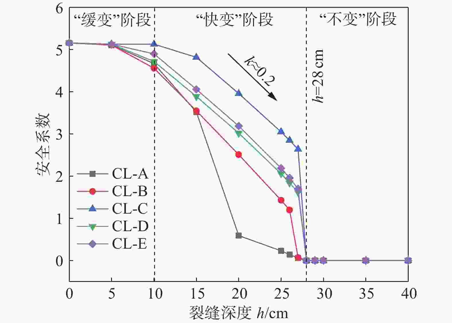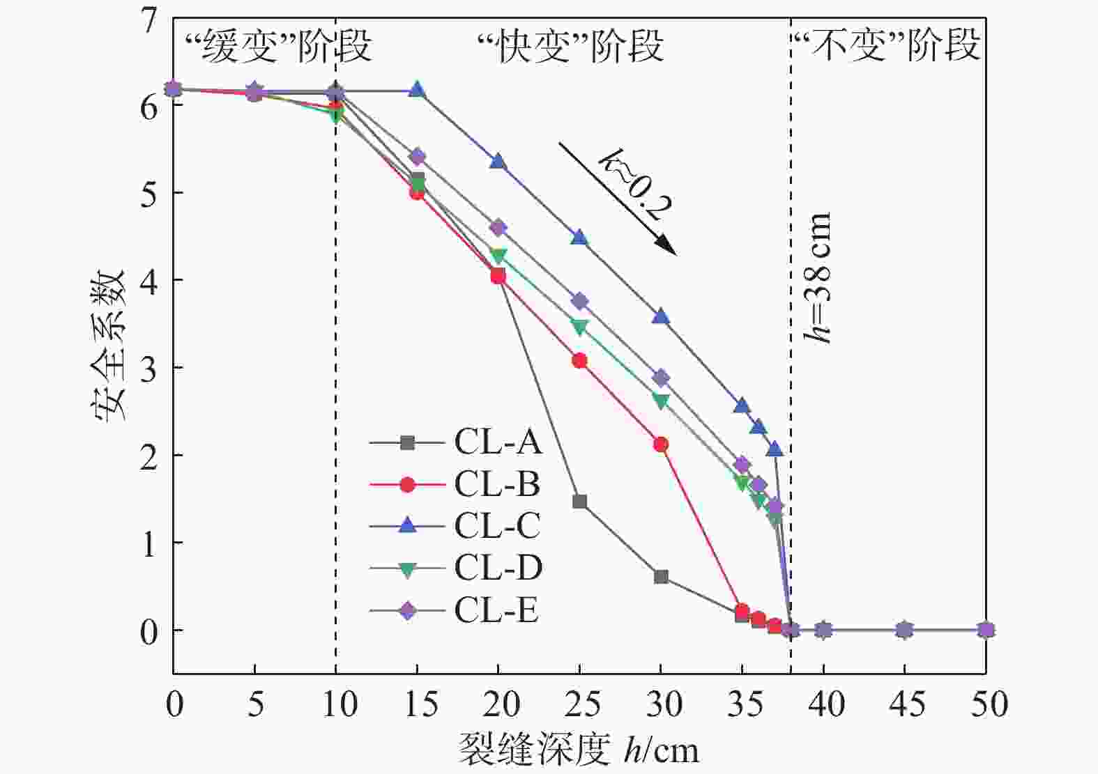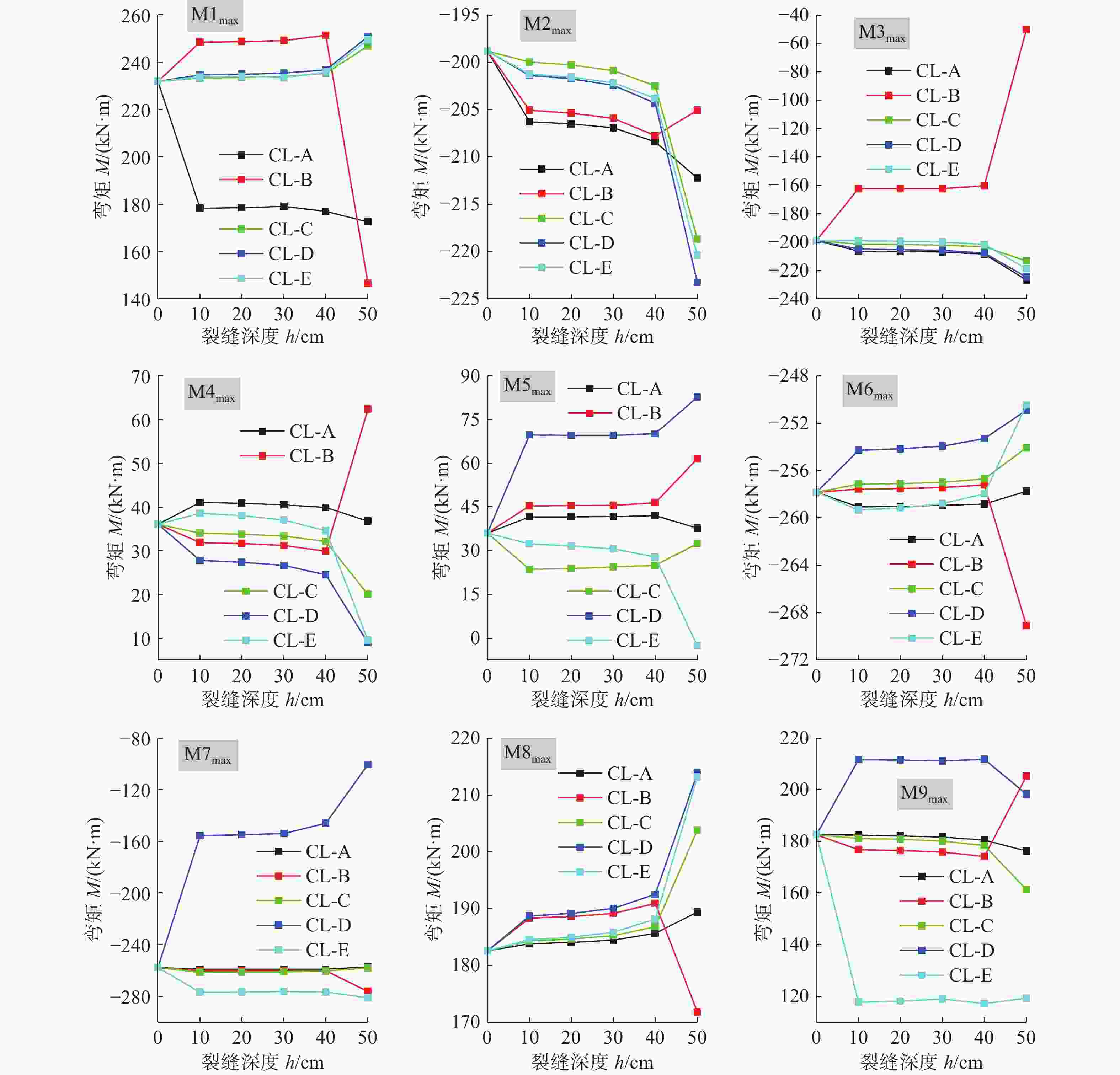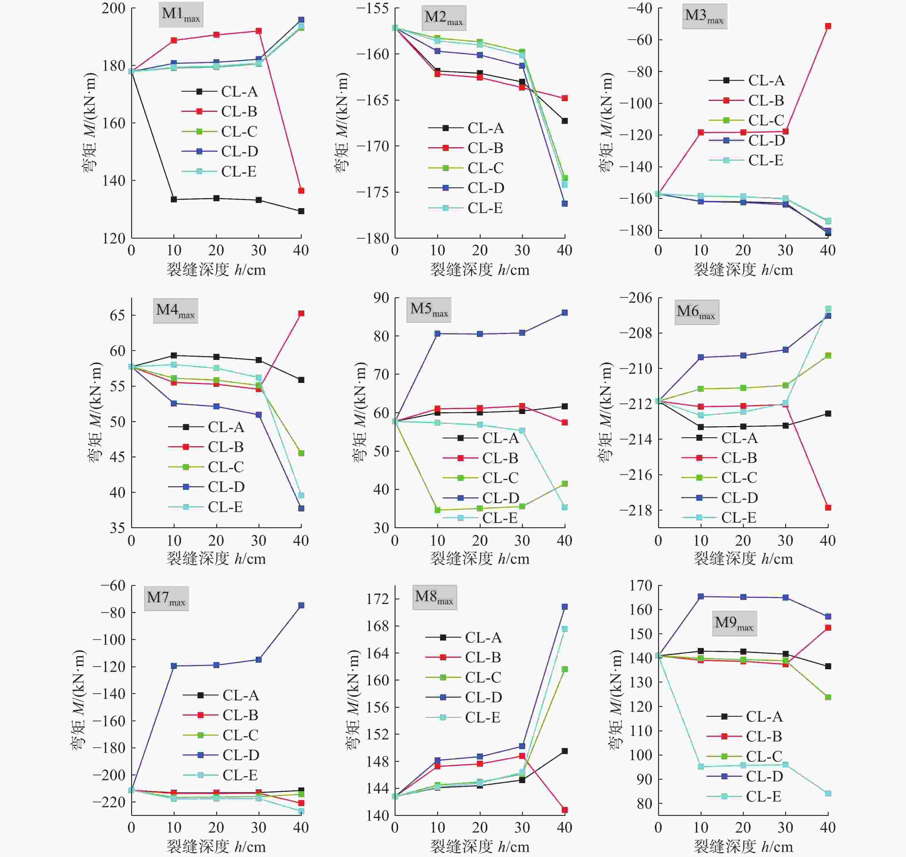 摘要: 为了研究运营隧道纵向裂缝发育性状对二次衬砌结构受力及形变特征的影响规律,根据隧道裂缝调查结果建立衬砌结构的荷载–结构计算模型,并进行带裂缝衬砌结构的受力变形分析。结果表明:衬砌开裂导致支护结构(除仰拱外)的受力(弯矩绝对值)减小,裂缝深度增加使得结构弯矩出现两次突变,造成局部应力瞬间损失,但衬砌厚度的增加一定程度减缓了应力损失;拱顶与拱肩附近裂缝处结构变形较为严重,结构安全系亦显著降低,当裂缝深度占比衬砌厚度约70%时(拱顶开裂时占比约40%),衬砌结构安全系数降低至零,且随着裂缝数量增加,衬砌结构整体安全性呈线性降低。可见,衬砌裂缝发育到一定程度时,结构整体安全系数小于设计规范所规定的下限值,对起拱线以上裂缝应及时探明裂缝深度并控制其变形,起拱线以下裂缝处易发生压碎破坏,应及时补强支护,以抵抗拱脚上部衬砌结构的下压力,对运营隧道衬砌病害处治具有理论指导意义。Abstract: To investigate the influence of longitudinal crack development on the mechanics and deformation characteristics of the secondary lining structure, a load-structure calculation model was established based on tunnel crack investigation. Stress deformation analysis was conducted for the cracked lining structure. The results indicate that cracking in the lining leads to a decrease in stress (absolute bending moment) in the supporting structure (excluding invert). Moreover, an increase in crack depth causes two changes in bending moment within the structure, resulting in instantaneous local stress loss. However, an increase in lining thickness mitigates this stress loss to some extent. Severe structural deformations occur near cracks at both arch and spinner locations, significantly compromising structural safety. When crack depth accounts for approximately 70% of the lining thickness (around 40% for arch cracks), the safety factor of the lining structure decreases to zero and overall safety linearly declines with an increasing number of cracks. It is evident that when cracking reaches a certain extent, overall safety falls below design specification limits, therefore timely verification and control measures should be implemented for cracks above the arch line to effectively manage their associated deformations. Cracks below this line are prone to crushing damage; hence reinforcement support should be promptly applied to withstand downward pressure from above-the-arch footlining structures. It has theoretical guidance significance for the treatment of lining diseases in operating tunnels.