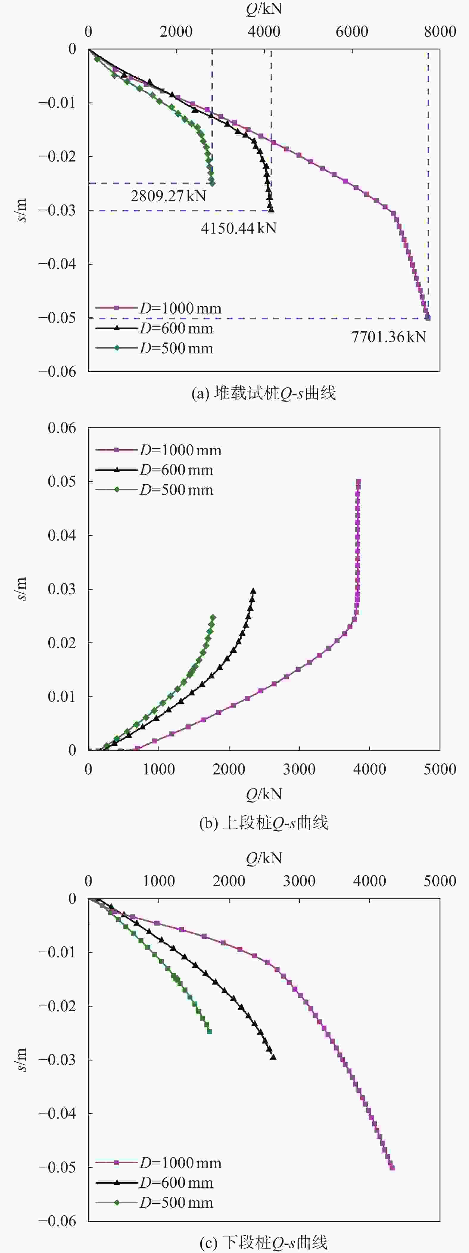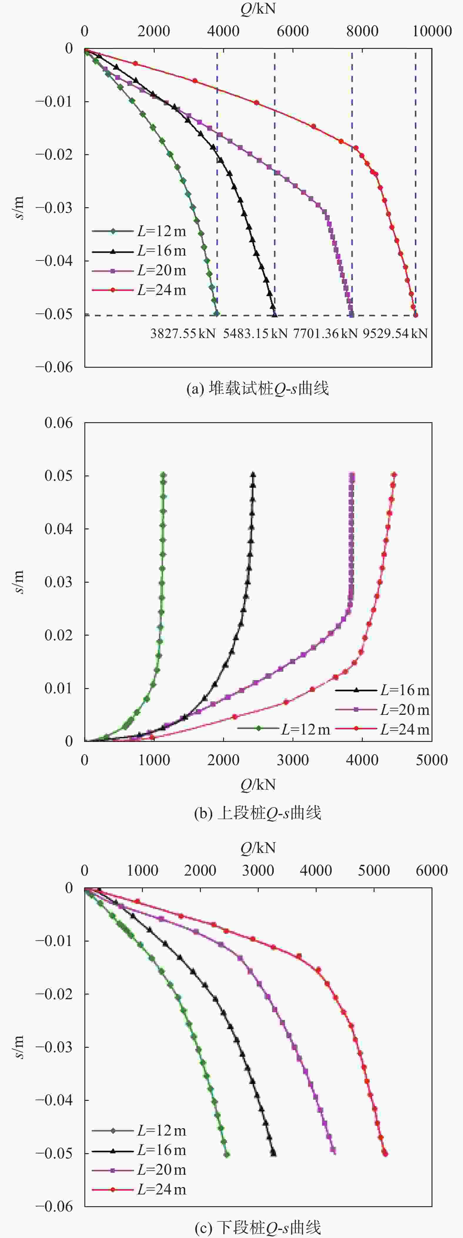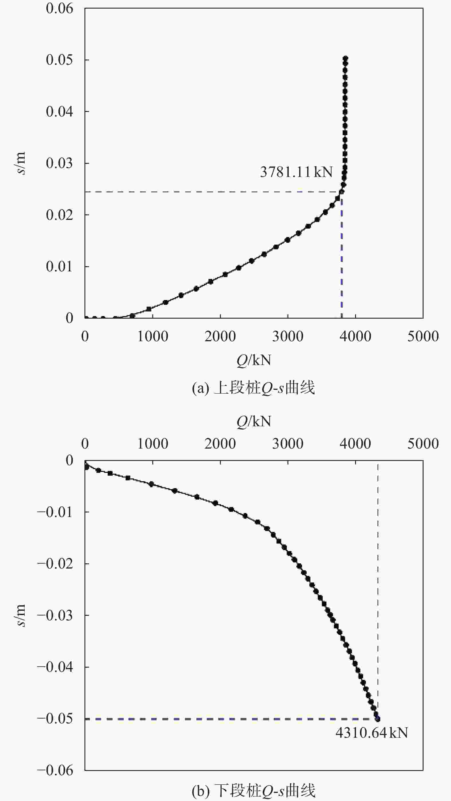 摘要: 与传统桩基检测方法相比,自平衡试桩法可满足大吨位、水上试桩等特殊情况的需求,在近海及海上桩基检测中具有独特的优势。为研究滨海软土地基管桩自平衡法试桩过程的荷载传递特性,分析桩参数对转换系数的影响规律,通过建立桩土数值模型,分别模拟自平衡试桩和传统试桩过程,结合有限元法和等位移法,对转换系数和极限承载力进行计算,并讨论桩参数对转换系数的影响规律。研究结果表明:通过将等位移法引入自平衡桩土模型,计算得到等效转换的极限承载力与堆载法计算结果误差在0.5%以内,可准确计算自平衡转换系数,且管桩桩长和桩径增大会显著提高桩基承载力,桩参数对自平衡转换系数和桩基极限承载力具有显著影响。Abstract: Compared with traditional methods, O-cell test has unique advantages for some special sites, especially in the offshore pile foundation testing. To study the load transfer characteristics of the O-cell method for testing piles in coastal soft soil foundation, and analyze the influence of pile parameters on the conversion coefficient, this paper established the pile-soil numerical model to simulate the O-cell and traditional pile testing processes. The finite element method and equal displacement method were combined to calculate the conversion coefficient and ultimate bearing capacity, and the influence of pile parameters on the conversion coefficient was discussed. The research results indicate that the error between the equivalent conversion ultimate bearing capacity calculated by introducing the equal displacement method into the O-cell pile-soil model and the calculation results of the surcharge method is within 0.5%, and the O-cell conversion coefficient can be accurately calculated. The increase of the length and diameter of the pipe pile will significantly improve the bearing capacity of the pile foundation, and the pile parameters have a significant impact on the O-cell conversion coefficient and the ultimate bearing capacity of the pile foundation.