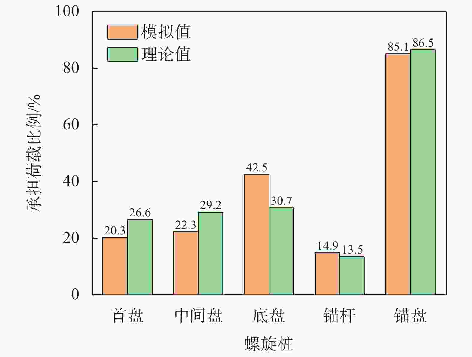 图  10  极限状态下螺旋桩锚盘和锚杆荷载分担占比