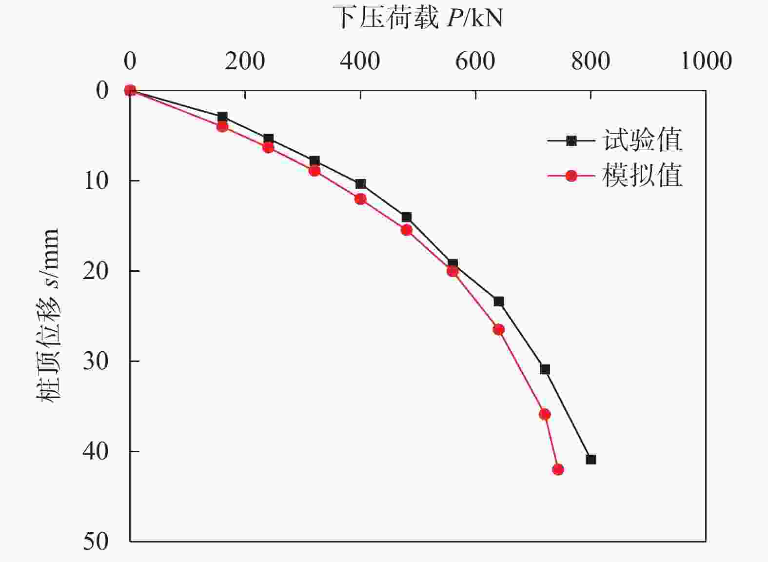 图  6  下压荷载–桩顶位移曲线模拟值与实测值对比