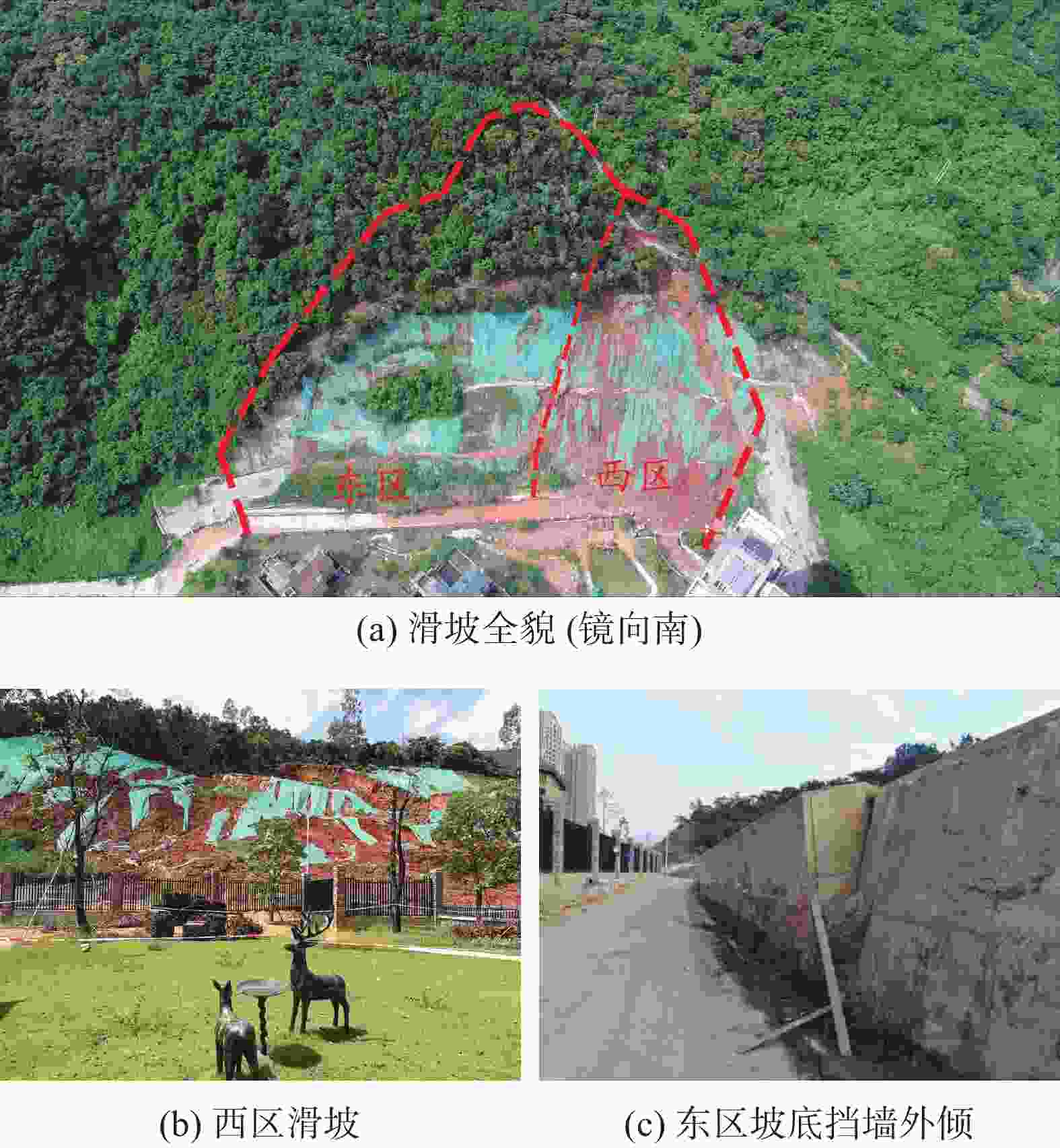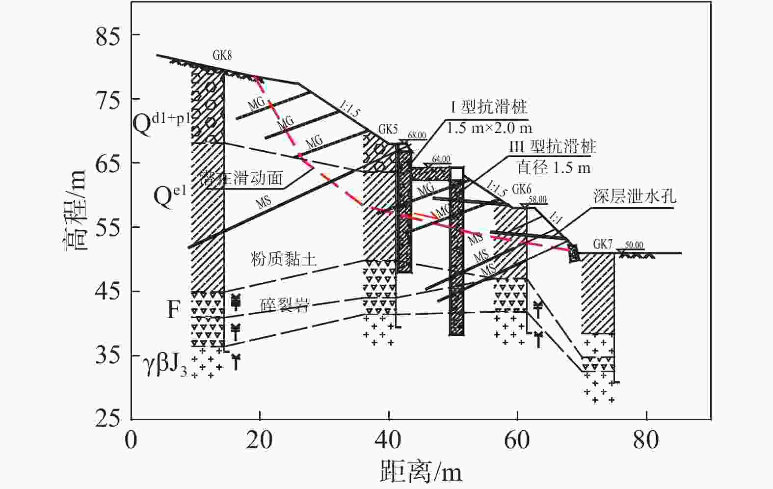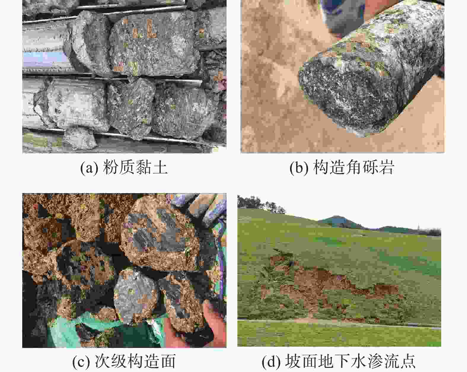摘要: 丰树山滑坡是一起因工程建设切坡引发的牵引式滑坡。通过地质调查、钻探、井探、土工试验以及综合分析等方法,查明了滑坡发育过程、滑坡的基本特征和断裂带的岩土特性,系统分析研究了滑坡稳定性和变形活动趋势,提出了削坡减载、设置抗滑桩+锚索(锚杆)框架梁联合支护结构、完善的截排水系统、坡面复绿综合治理措施。结果表明:研究区内地质条件复杂,断裂构造发育,构造带内地下水较发育,由断裂构造岩风化残积而成的粉质黏土力学性质软弱,是滑坡形成的重要条件;开挖坡脚、持续性强降雨是滑坡形成的主要诱因。研究成果可为城市地质调查、类似滑坡工程防治提供参考。Abstract: The Fengshushan landslide is a traction landslide caused by a cutting slope of engineering construction. Through geological survey, drilling, well exploration, soil test, and comprehensive analysis, the development process of landslide, the basic characteristics of landslide, and the geotechnical characteristics of fault zone were found out, and the stability and deformation trend of landslide were systematically analyzed. Comprehensive treatment measures such as cutting slope and reducing load, setting up the anti-slide pile and anchor cable (anchor rod) frame beam combined support structure, drainage system improvement, and slope greening were put forward. The results show that the geological conditions in the study area are complex, faults are developed and groundwater is abundant in the tectonic belt. The mechanical properties of the silty clay formed from the weathering of the fault structural rock are weak, which are the important conditions for the formation of landslides. Excavation of slope feet and continuous heavy rainfall are the main inducement of landslides. The research results provide a reference for urban geological surveys and similar landslide engineering prevention.