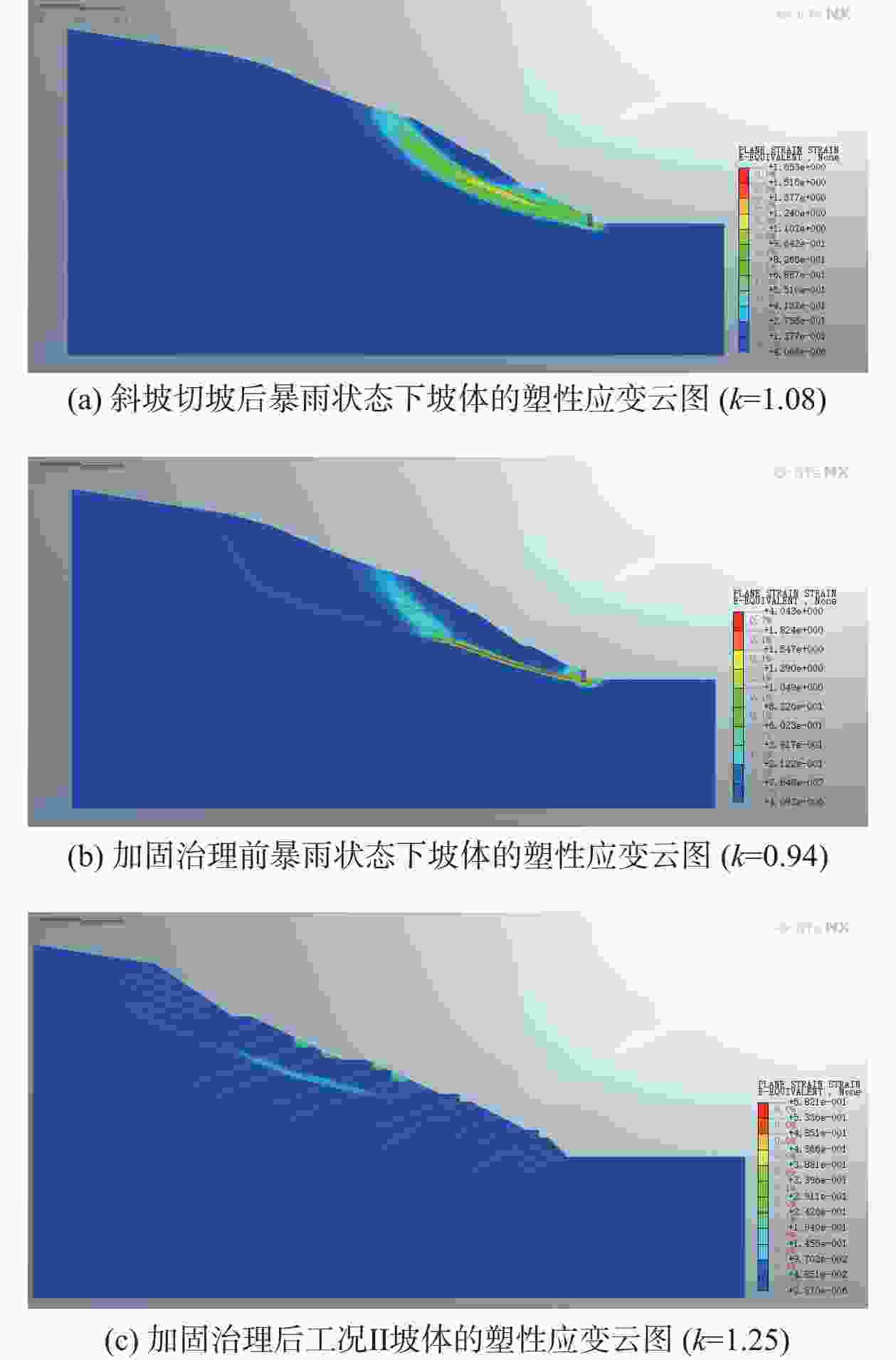 φ/(°)碎块石质黏性土 18.5 13.4 20.0 10 0.25 砂质黏性土 19.0 15.0 19.6 15 0.25 粉质黏土 19.0 13.5 17.0 12 0.30 全风化岩 19.5 15.6 21.1 25 0.25 强风化岩 20.0 32.0 27.0 30 0.23 中等风化岩 21.0 200.0 36.0 3500 0.21 微风化岩 23.5 700.0 43.0 20000 0.20 滑带土 19.0 12.0 15.5 10 0.32 抗滑桩 25.0 30000 0.20 表 2 丰树山滑坡治理工程变形监测结果