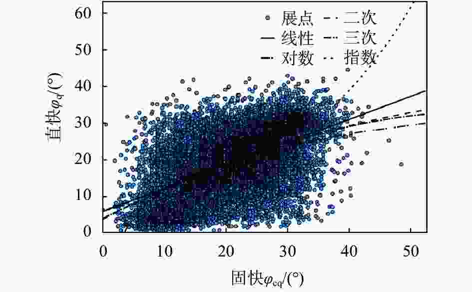 序号 方程 φq,φcq拟合R2 cq,ccq拟合R2 1 线性 0.27 0.30 2 对数 0.24 0.29 3 二次 0.16 0.26 4 三次 0.20 0.24 5 指数 0.25 0.25 表 2 直快指标与固快指标拟合结果