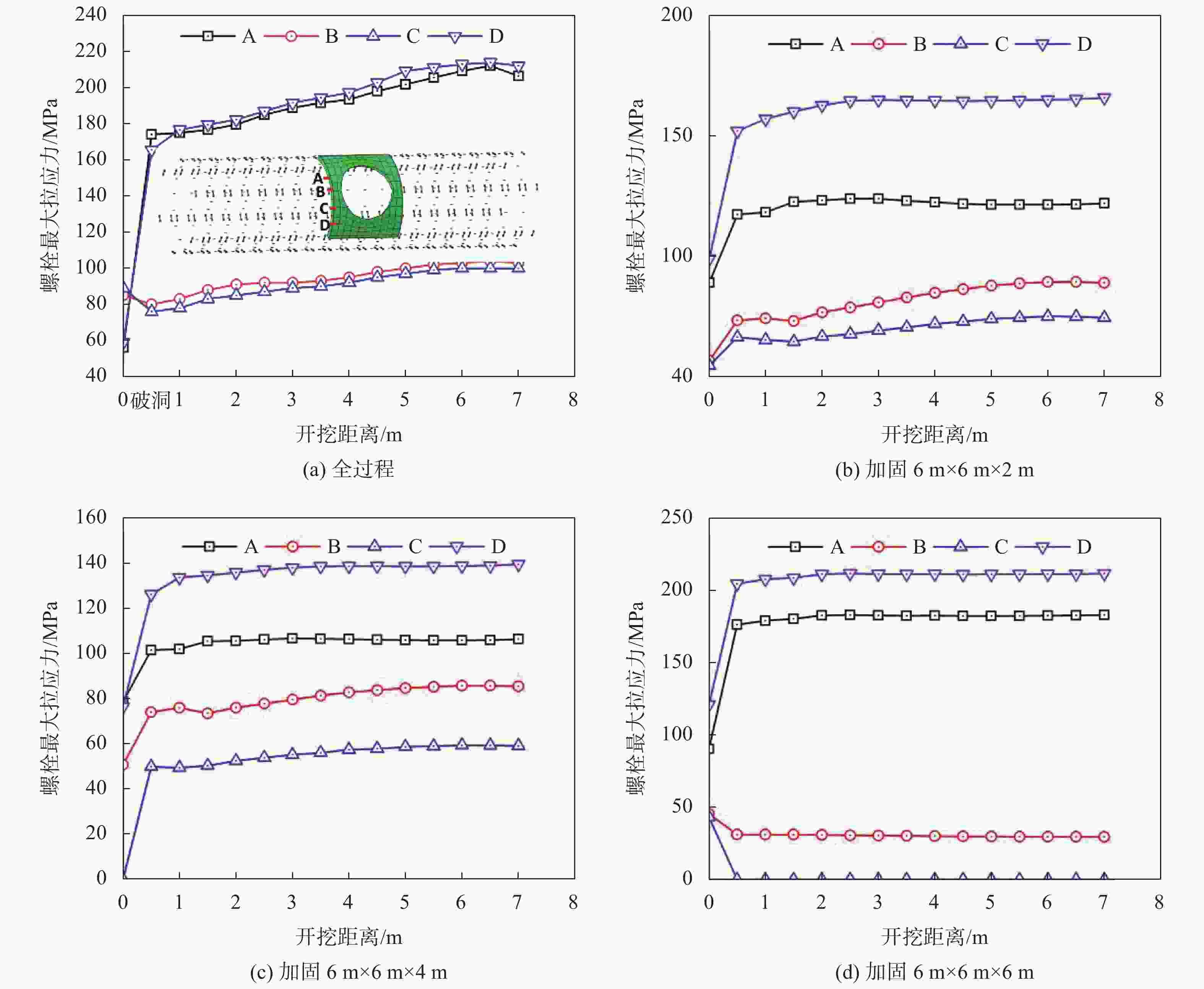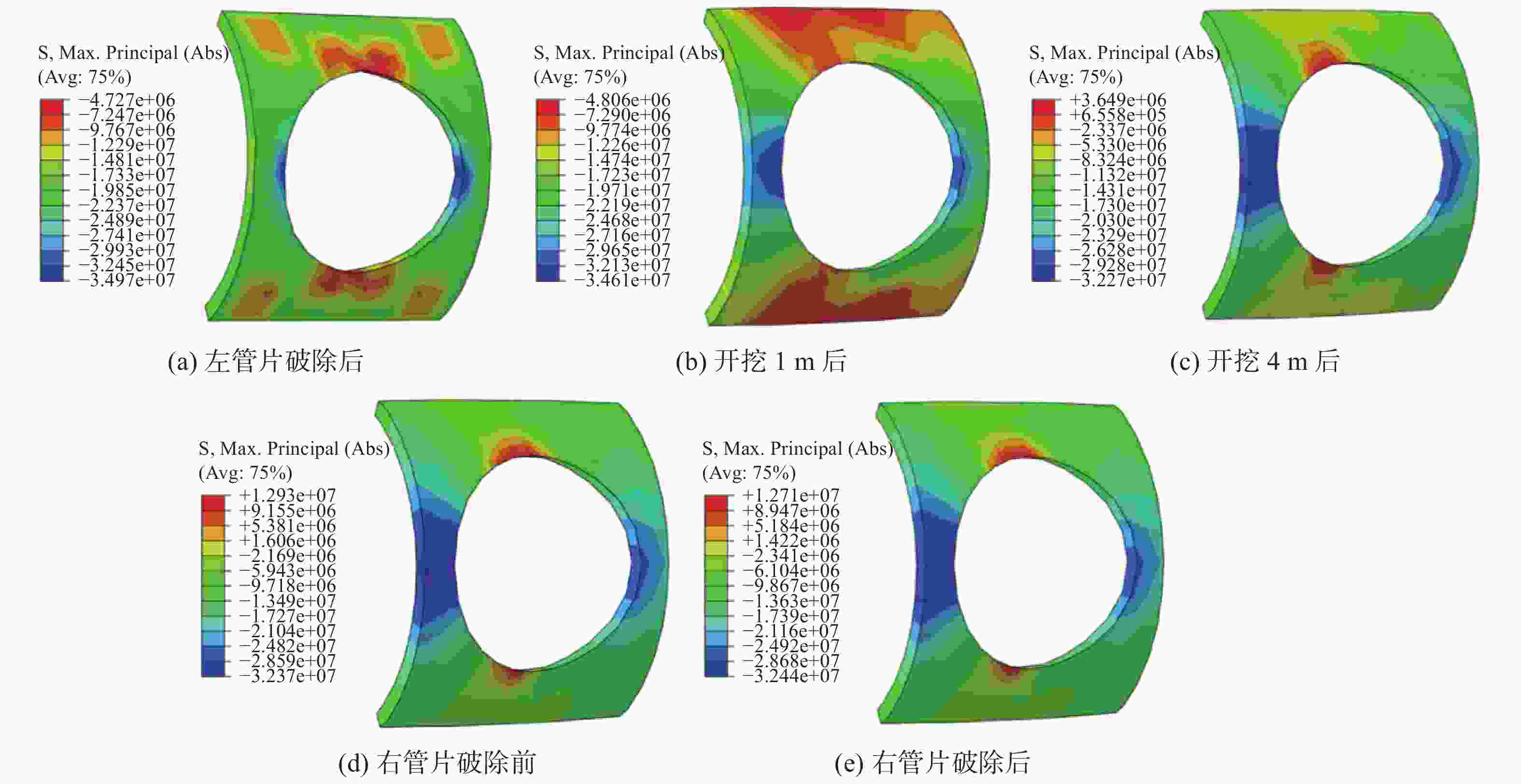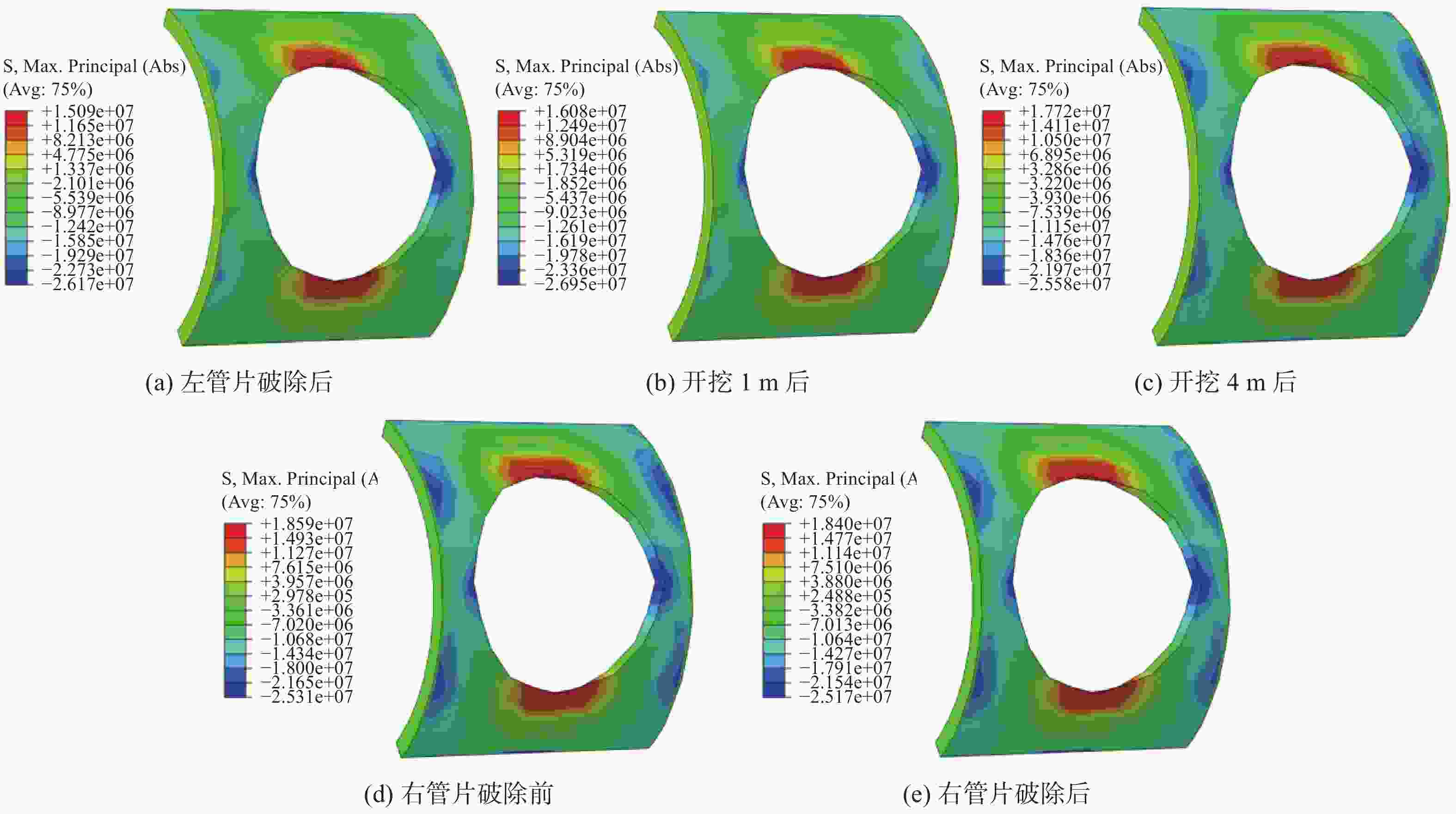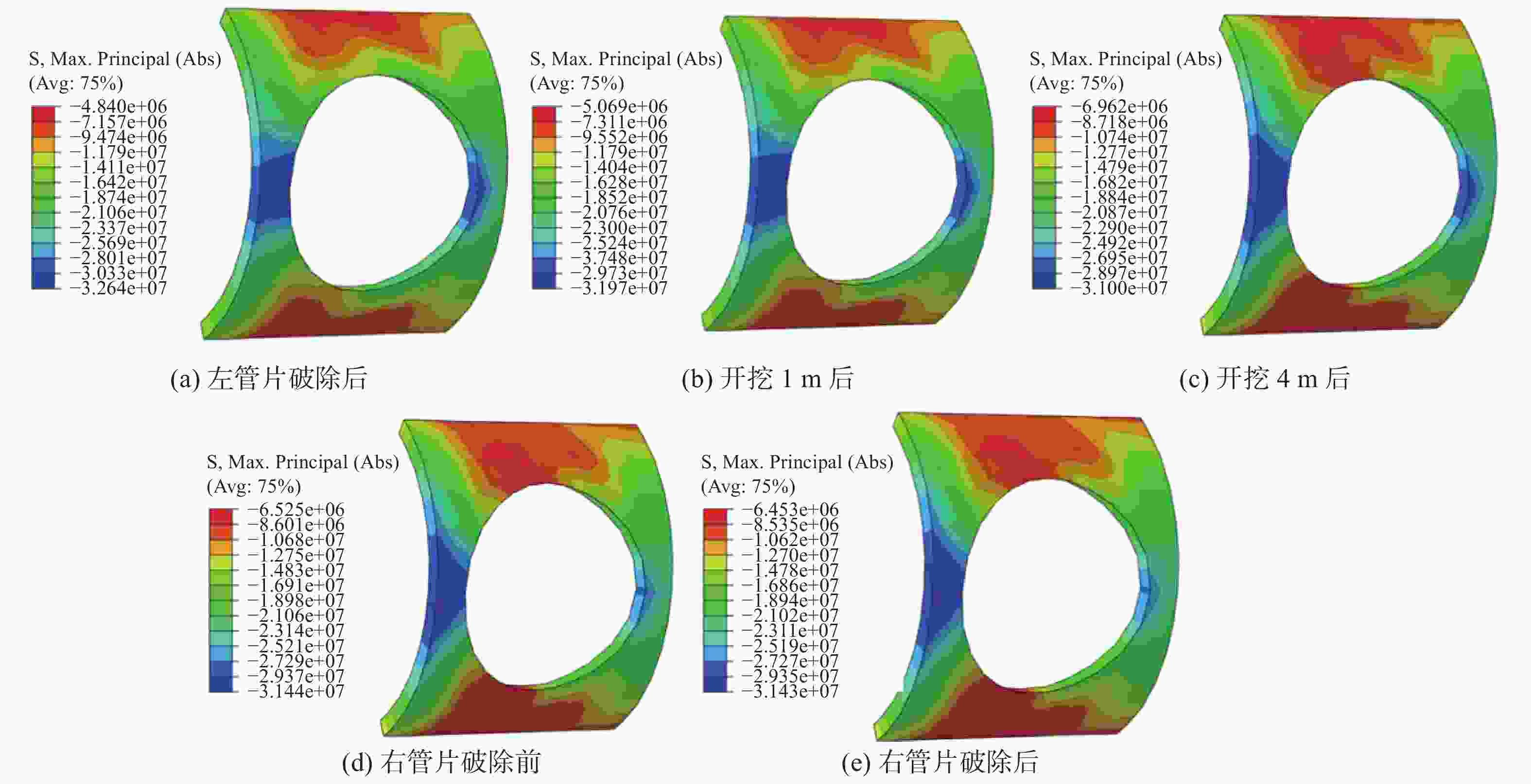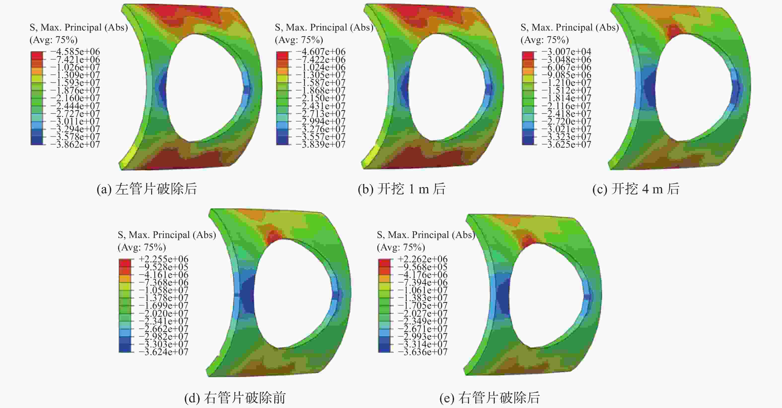 摘要: 深入研究了地铁盾构隧道联络通道施工过程中地层加固范围对主隧道的影响规律。通过数值模拟的方法,全面分析了地层加固范围对主隧道管片总体变形、特殊管片应力及位移、特殊与普通管片间螺栓受力状态等力学行为的影响规律。研究结果表明:(1)进行地层加固可显著降低特殊管片最大拉应力,但会导致其最大压应力明显增大,同时对横向扩张位移与竖向收敛位移控制效果有限;(2)适当地进行地层加固可明显降低螺栓最大拉应力,大幅降低横通道的顶部沉降位移,小幅减小底部隆起位移,有利于横通道整体变形控制;(3)当地层加固范围过大时,螺栓最大拉应力出现显著回升,综合考虑经济性、施工效果等因素,应避免通长加固。Abstract: The influence caused by the reinforcement range of the connecting passage on the main tunnel during the construction process of the connecting passage of subway shield tunnels was investigated. Through numerical simulation, the influence of the reinforcement range of the stratum on the mechanical behavior of the main tunnel segment, such as the overall deformation of the main tunnel segment, the stress and displacement of the special segment, and the stress state of the bolts between the special and ordinary segments, was comprehensively analyzed. The results show that: (1) Ground reinforcement can significantly reduce the maximum tensile stress of special segments, but it will significantly increase the maximum compressive stress, and the control effect on lateral expansion displacement and vertical convergence displacement was limited. (2) Proper reinforcement can significantly reduce the maximum tensile stress of the bolt, greatly reduce the top settlement displacement of the transverse channel, and slightly reduce the bottom uplift displacement, which is conducive to the overall deformation control of the transverse channel. However, when the reinforcement range is too large, the maximum tensile stress of the bolt rises significantly. Considering the factors such as the economy and construction effect, full-length reinforcement should be avoided.