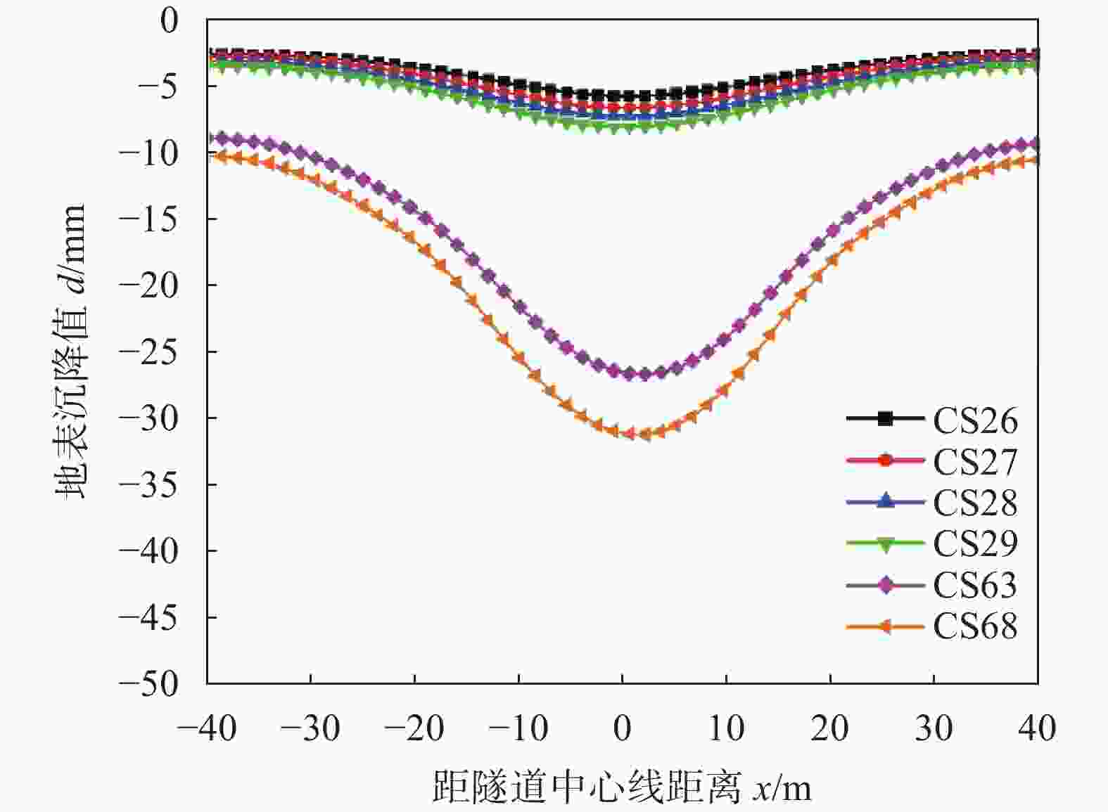 图  10  地表纵向中断面沉降曲线