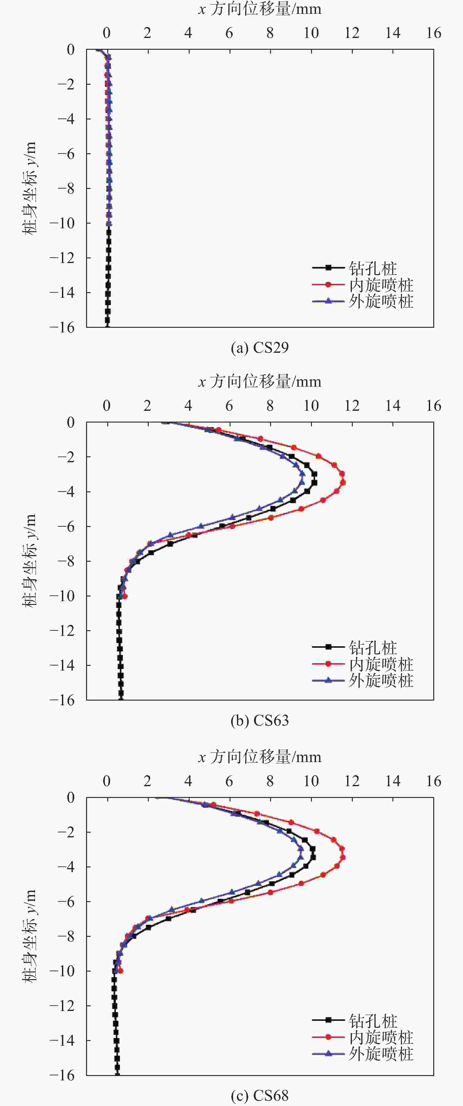 注:影响因素A,B,C分别为桩径、桩身插入比、桩间咬合量。