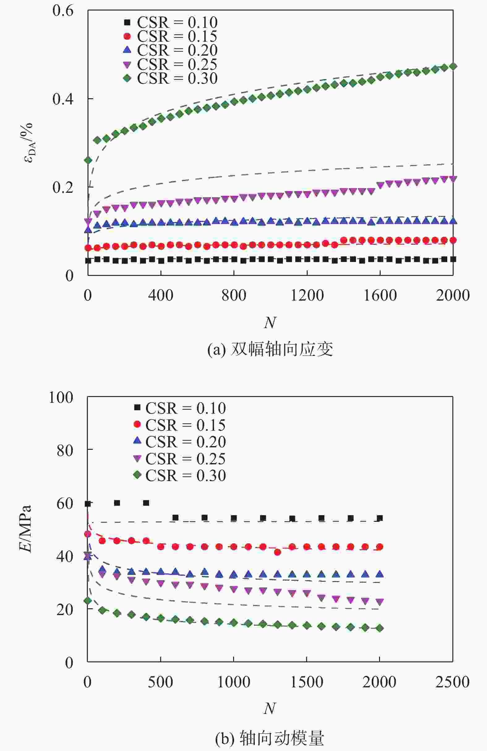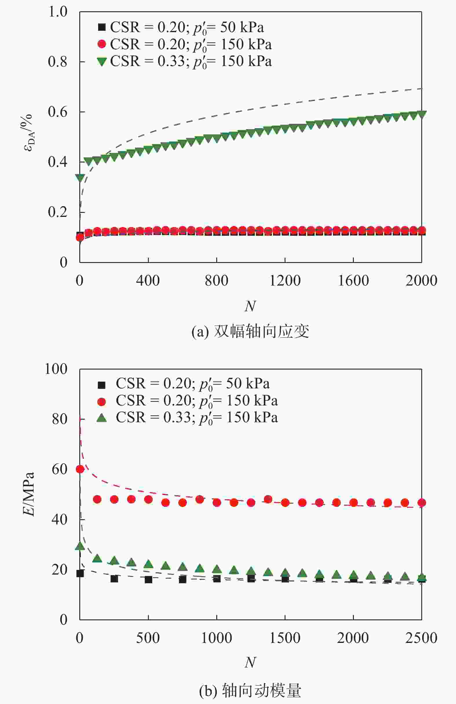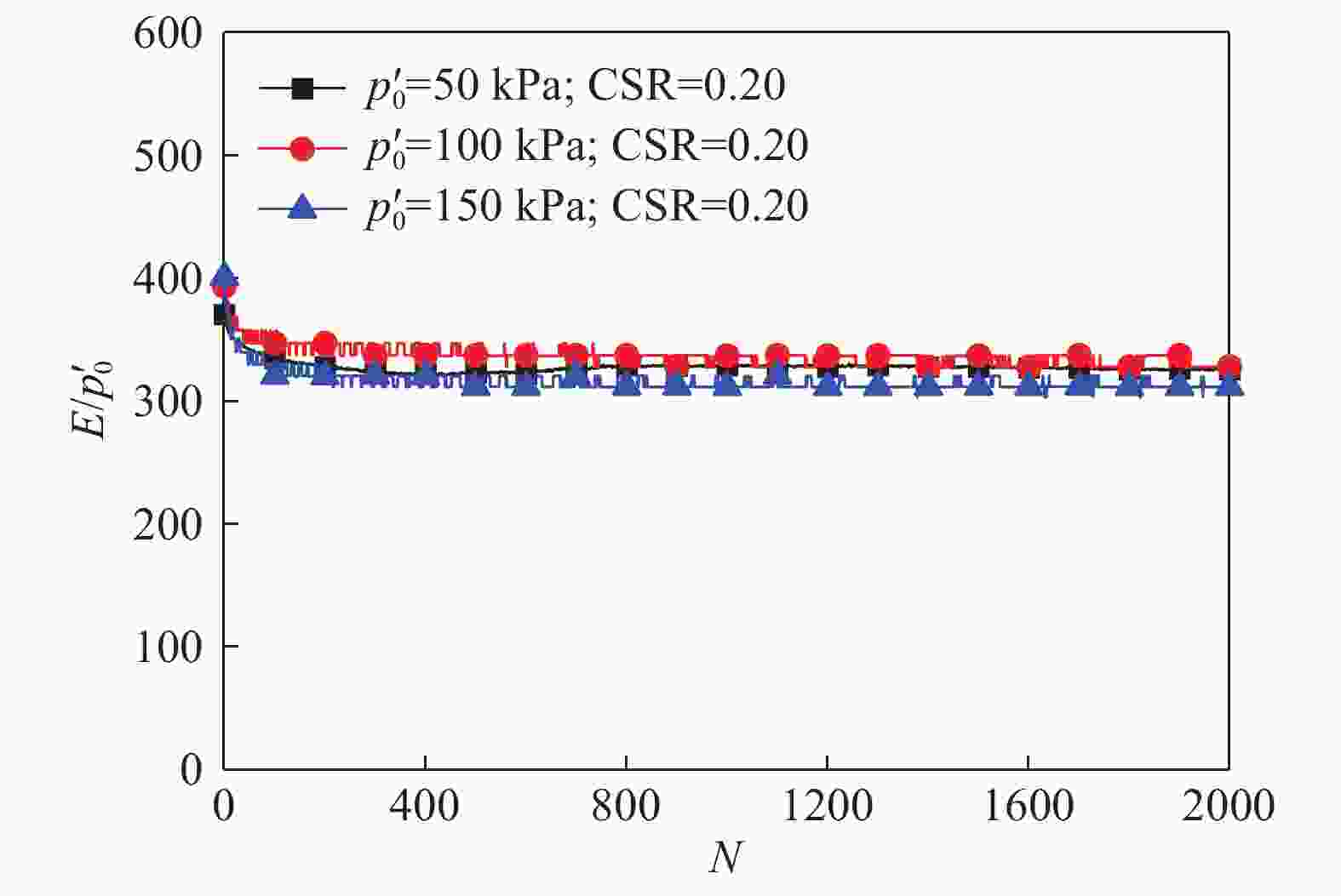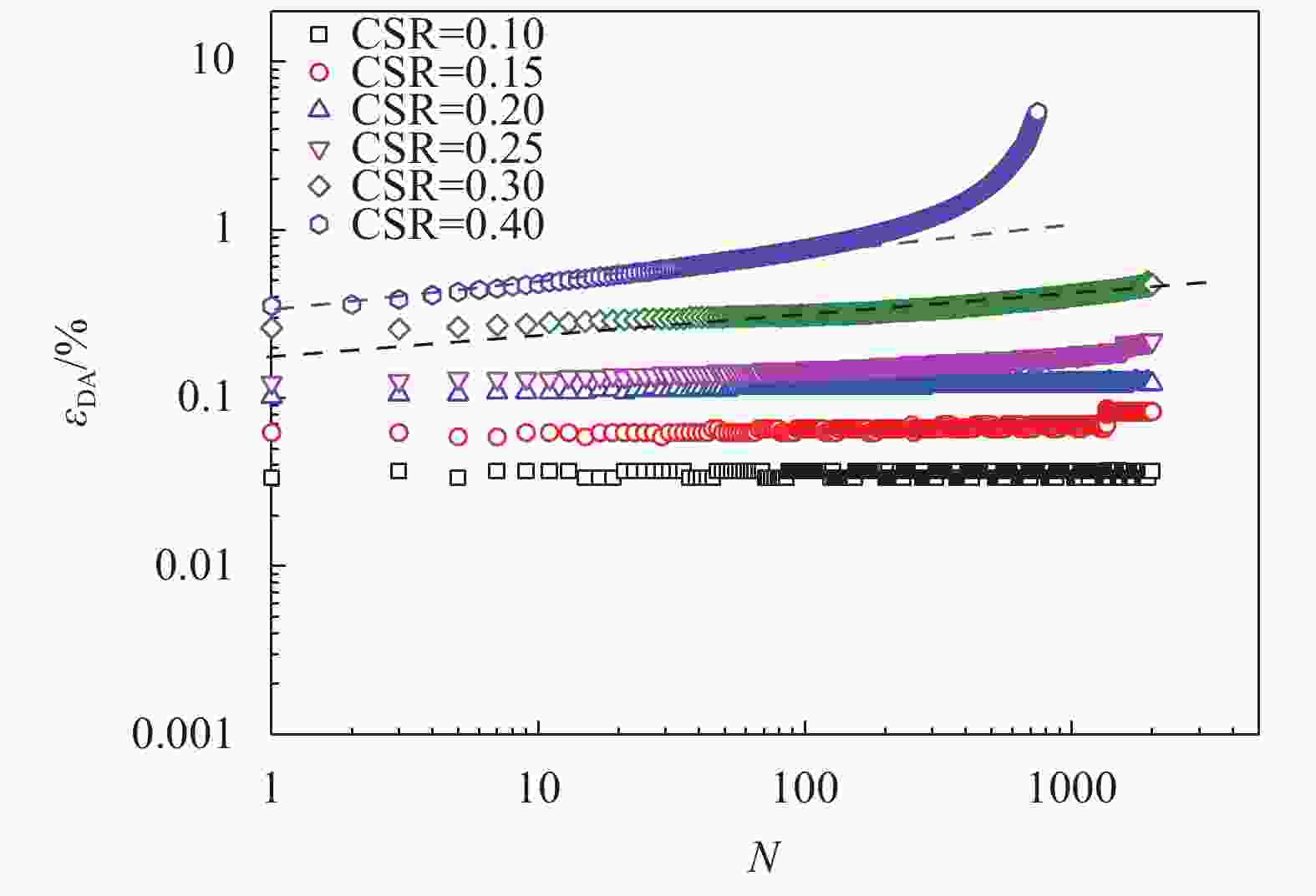 注:p0为有效固结围压;qcyc为正弦波的幅值;N为循环加载次数;$ \mathrm{CSR}=\dfrac{P_0'}{q_{\mathrm{cyc}}} $。