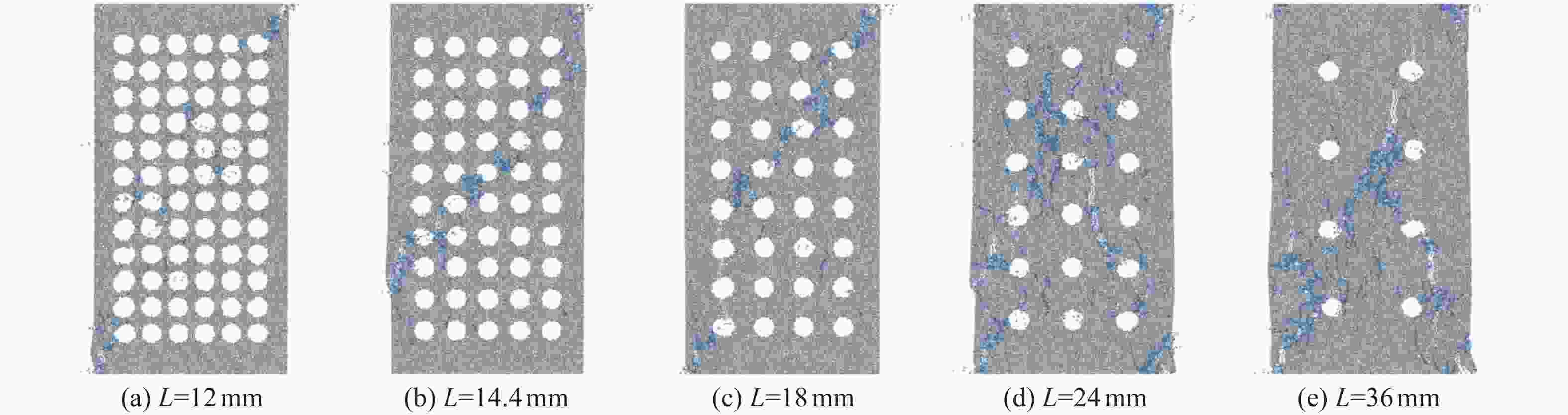 图  16  含均布不同孔洞直径岩石试样的破坏形式