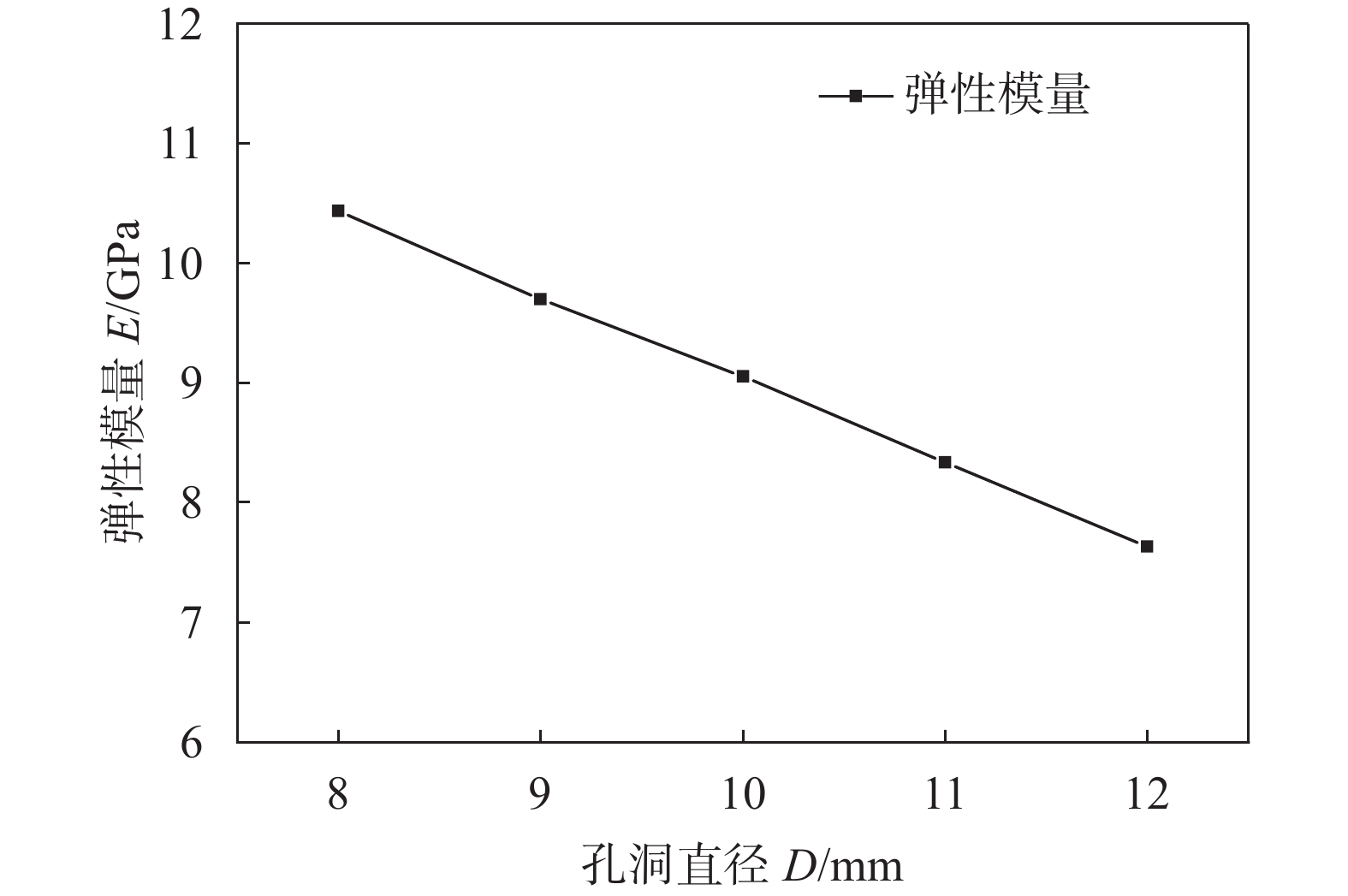 图  8  试样弹性模量随孔洞直径D与其中心距L比值变化曲线