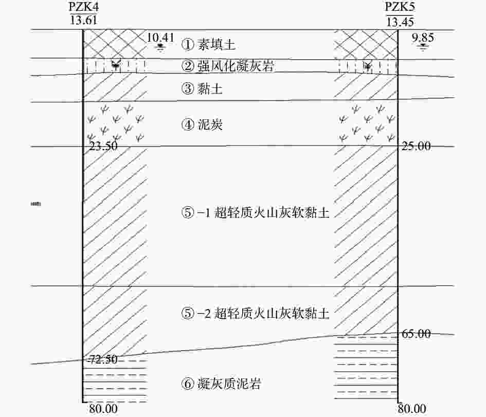 [1] 顾宝和. 岩土工程典型案例述评[M]. 北京:中国建筑工业出版社, 2015. [2] 李建忠. 真空堆载联合预压法加固码头堆场火山灰软基效果分析[J]. 水运工程, 2023, 608(3): 165-172. [3] 顾巨红, 宁峥嵘, 刘 瑜. 真空预压法处理火山灰质淤泥试验研究与应用[J]. 施工技术, 2018, 47( 24 ): 125-129. [4] 王军桥. 印度尼西亚万隆地区火山灰沉积软土工程地质特征研究[J]. 铁道勘察, 2017, 43(6): 50-52. [5] GB 50123—2019 土工试验方法标准[S]. [6] GB 50007—2011 建筑地基基础设计规范[S]. [7] GB/T 50145—2007 土的工程分类标准[S]. [8] GB 50021—2001 岩土工程勘察规范[S]. [9] 化建新, 郑建国. 工程地质手册(第五版)[M]. 北京: 中国建筑工业出版社, 2018. -